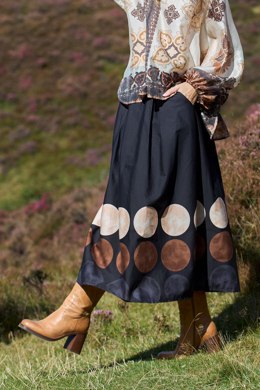 • Kuviollisen hameen parina toimii yksivärinen yläosa