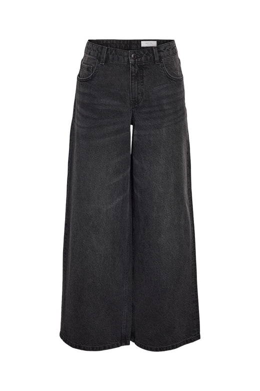 Leveälahkeiset mustat farkut tuovat rentoa tyyliä