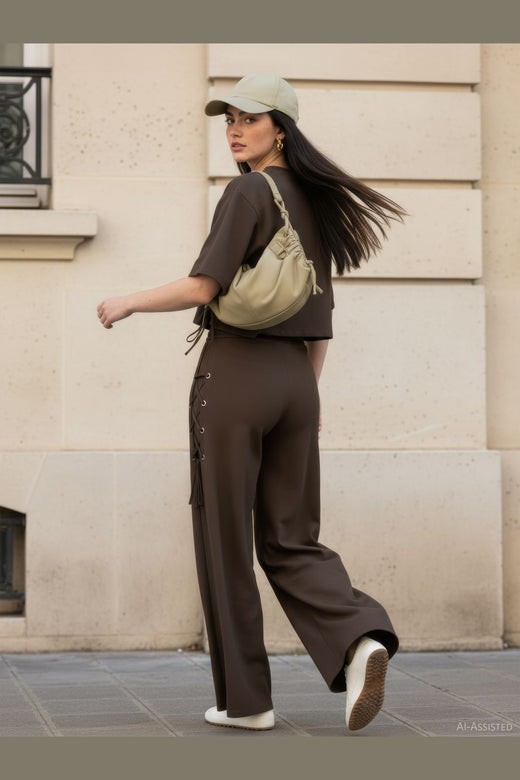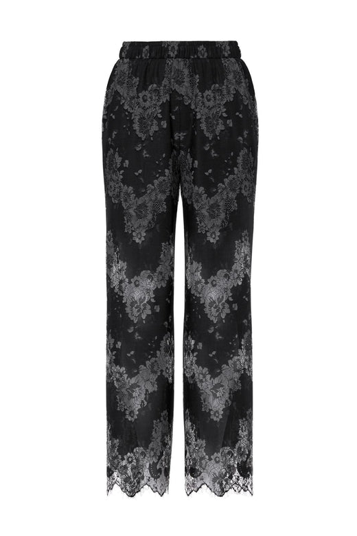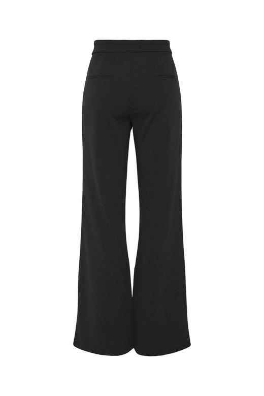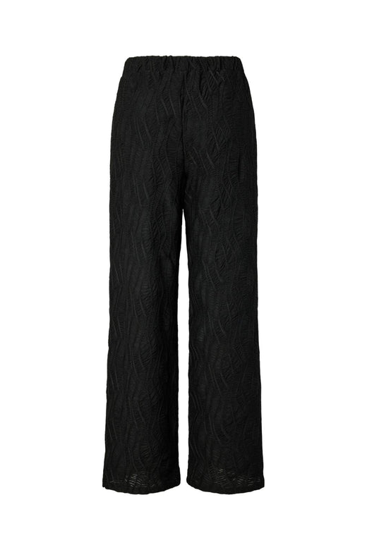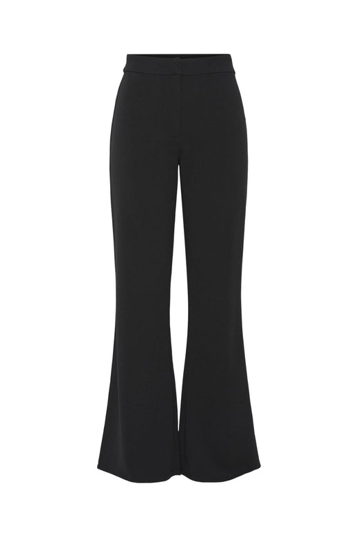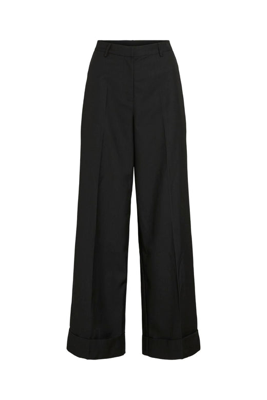 Leveälahkeiset mustat housut luovat ryhdikkään vaikutelman. Ne tarjoavat liikkumavaraa päivän aktiviteetteihin ja sopivat monenlaisiin tilaisuuksiin. Korkea vyötärö korostaa vartalon linjoja tasapainoisesti.