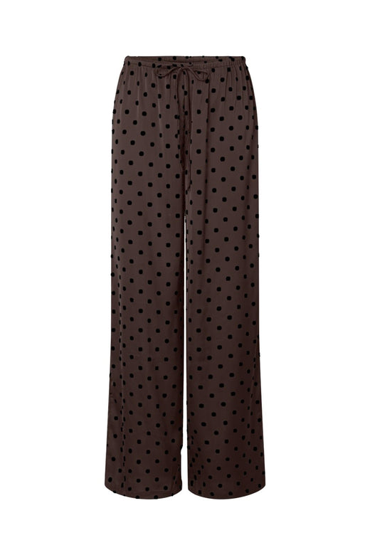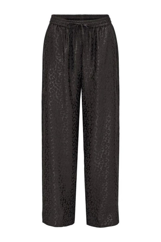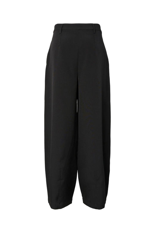 Leveälahkeiset mustat housut luovat ryhdikkään vaikutelman. Ne tarjoavat liikkumavaraa päivän aktiviteetteihin ja sopivat monenlaisiin tilaisuuksiin. Korkea vyötärö korostaa vartalon linjoja tasapainoisesti.
