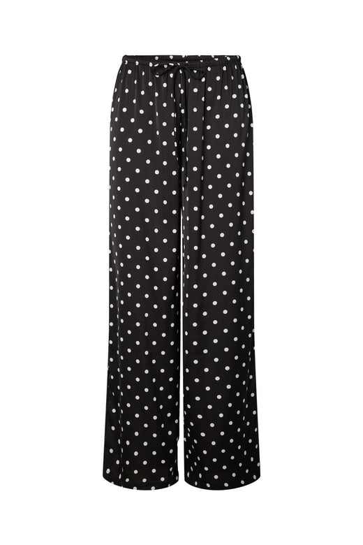 Mustat housut toimivat pohjana monenlaisille asukokonaisuuksille. Neutraalit värit luovat ajattoman kokonaisuuden, ja kuviolliset yläosat tuovat vaihtelua. Yksityiskohdat ja materiaalit tuovat persoonallisuutta asuun.