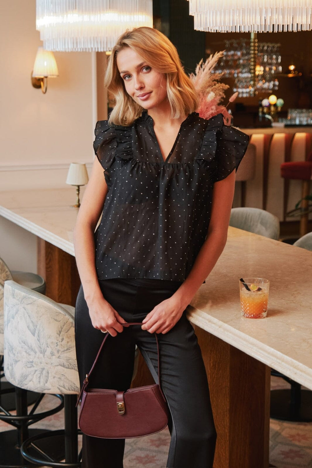 Juhlavat topit ovat monikäyttöisiä asun rakentamisessa. Kimaltava toppi toimii asukokonaisuuden keskipisteenä, ja satiinipintaiset mallit tuovat tyylikästä kiiltoa. Neuletopeissa on mukana pehmeää hohdetta, ja jersey-mallit sopivat monenlaisiin tilanteisiin.