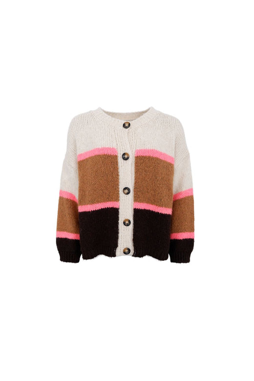 Vaaleanpunainen neuletakki tuo pehmeyttä asukokonaisuuteen. Se sopii erityisen hyvin kevään ja kesän vaaleisiin sävyihin, mutta toimii myös syksyllä tummempien värien rinnalla.