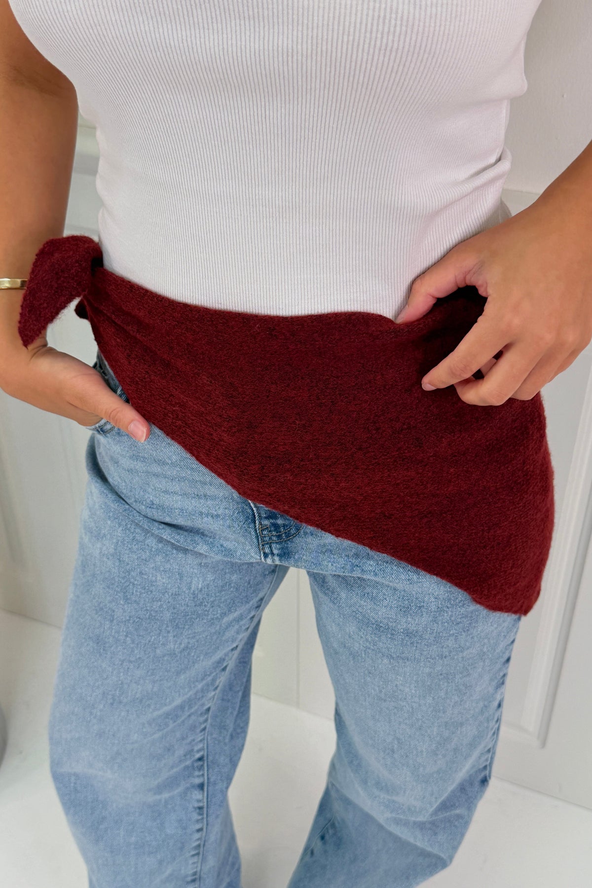 Burgundinvärinen huivi A-bee-merkiltä, valmistettu 80 % viskoosista ja 20 % villasta. Yksivärinen design on helppo yhdistää erilaisiin asukokonaisuuksiin.