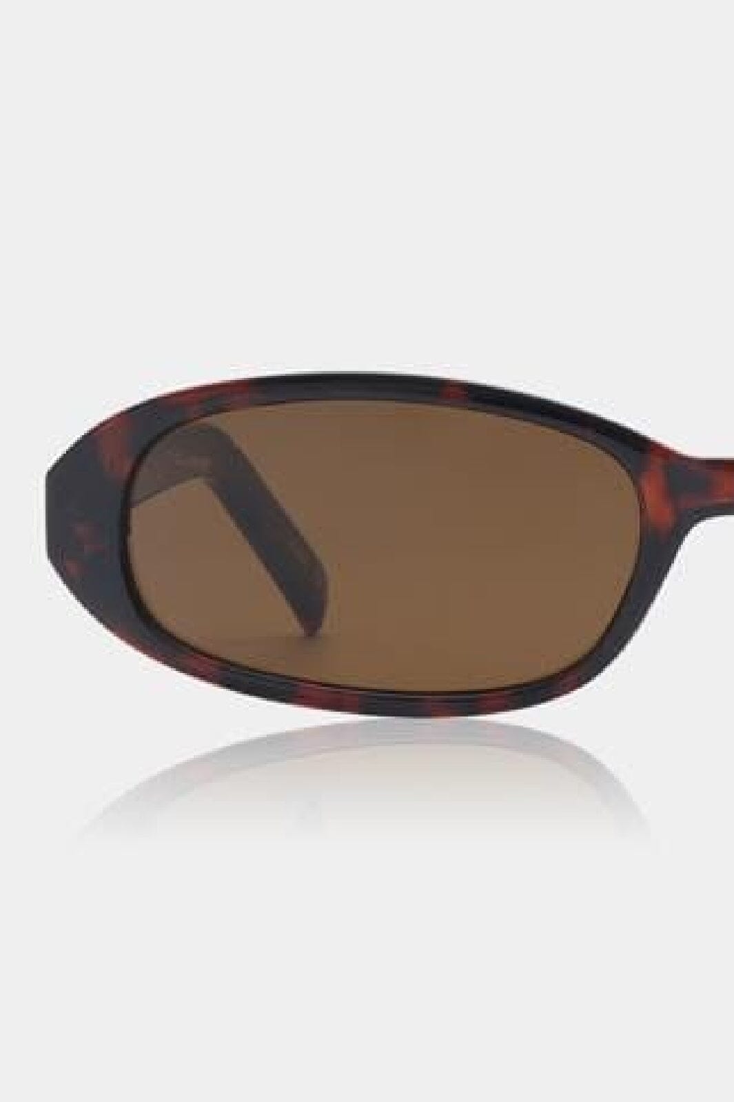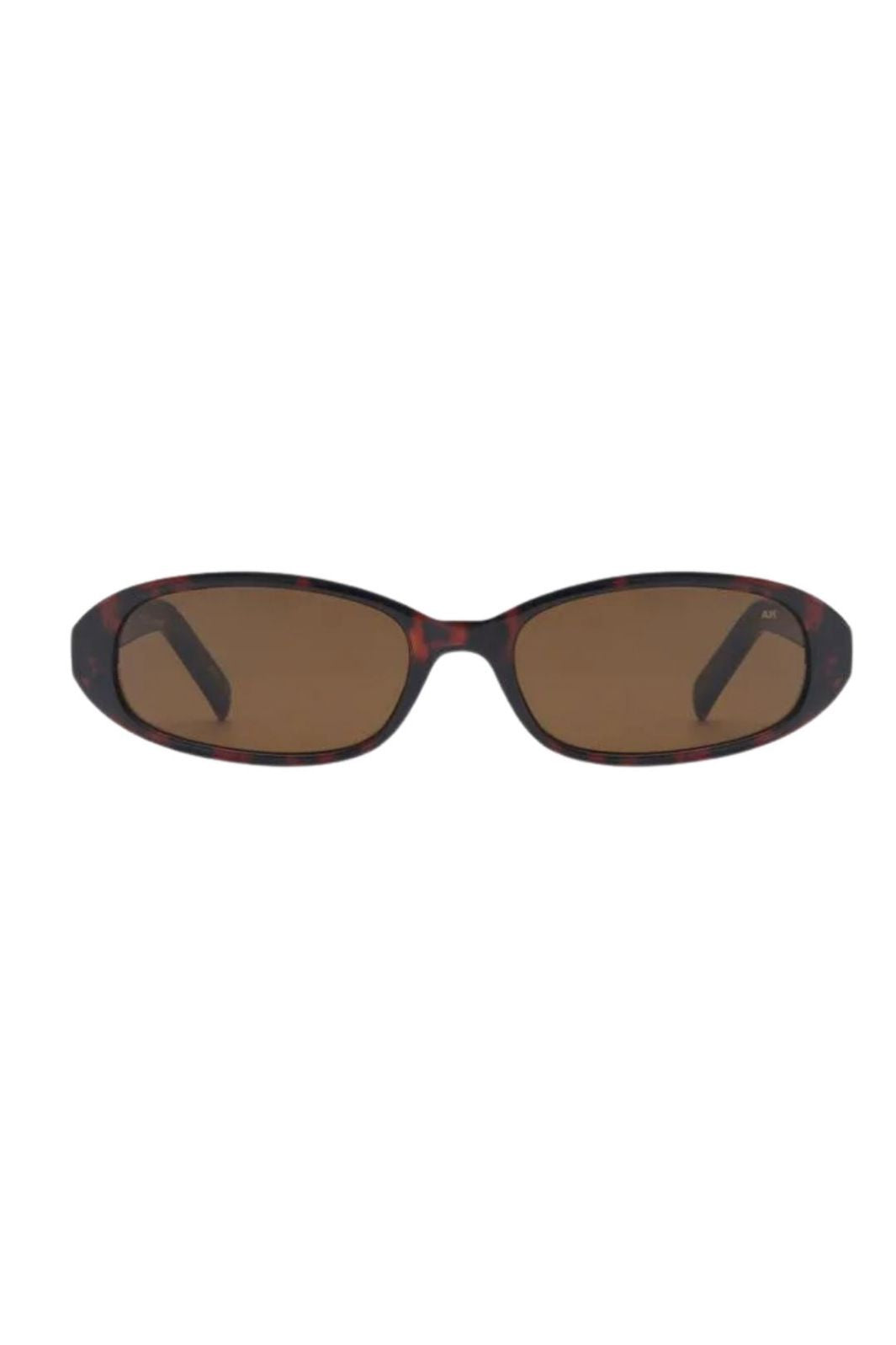 A. Kjærbede -aurinkolasit, joissa on soikea muoto ja ruskeat linssit. Kehys on klassisessa kilpikonnakuosissa ruskeissa sävyissä, mikä antaa laseille rustiikkisen ilmeen.