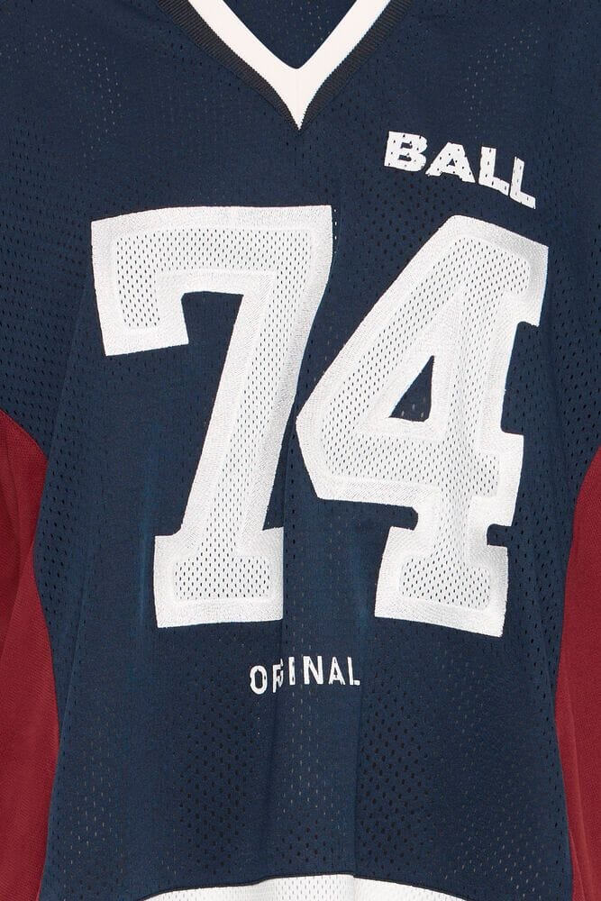 Tummansininen pusero Ballilta, jossa on koristeelliset tikkaukset sekä painatus numerolla 74 ja tekstillä BALL ORIGINAL valkoisena ja viininpunaisena.