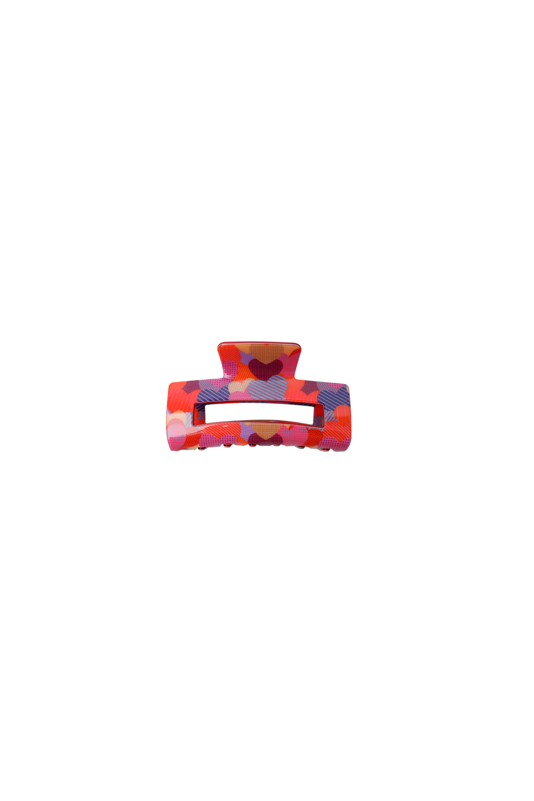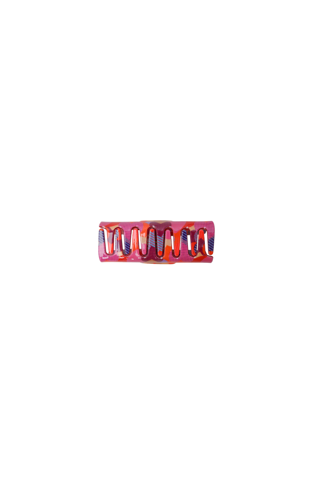 Hiusklipsi Black Colour -merkiltä, valmistettu 100 % akryylista ja kuvioitu värikkäällä punaisen, vaaleanpunaisen, violetin ja oranssin sävyissä.