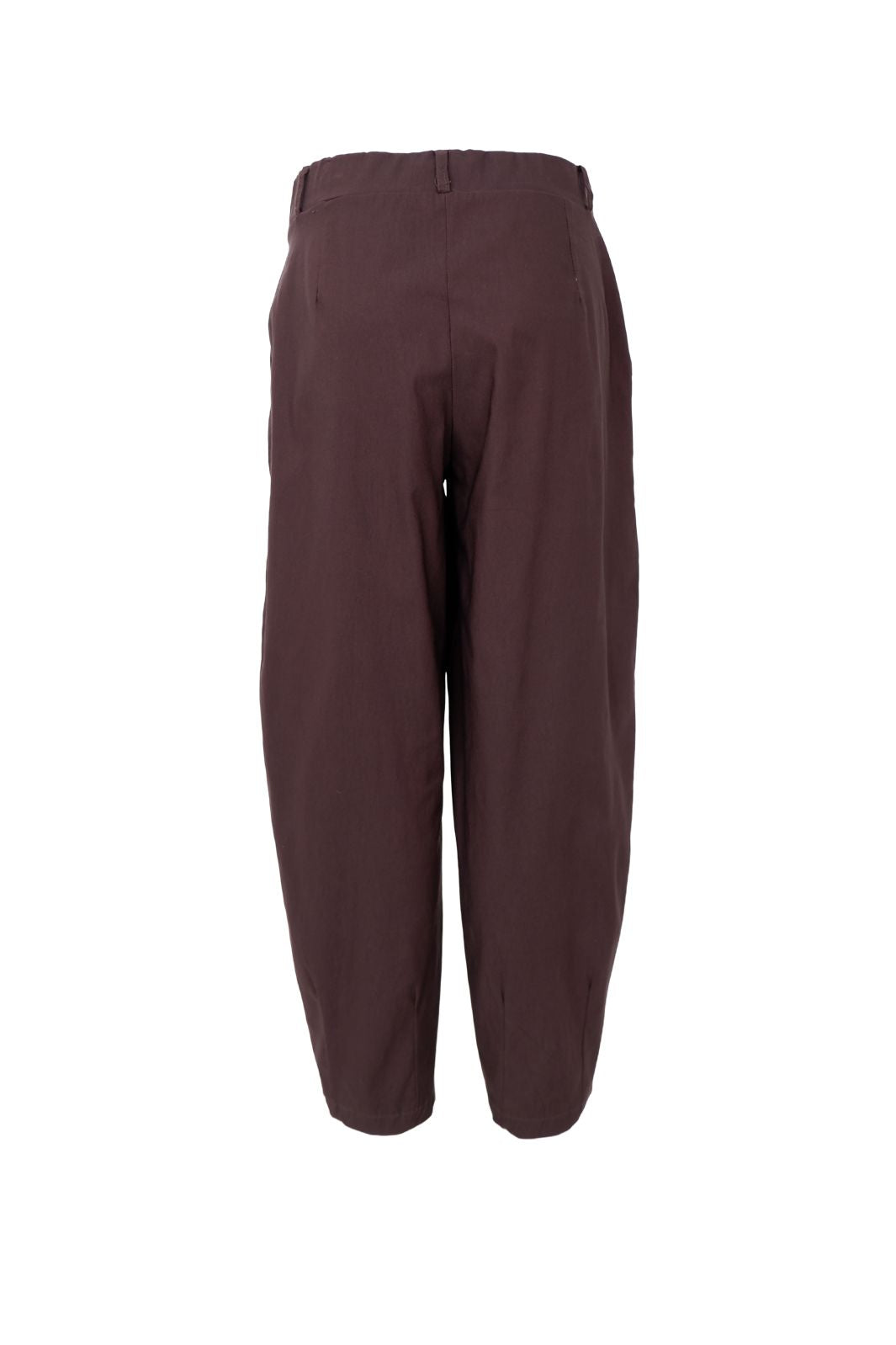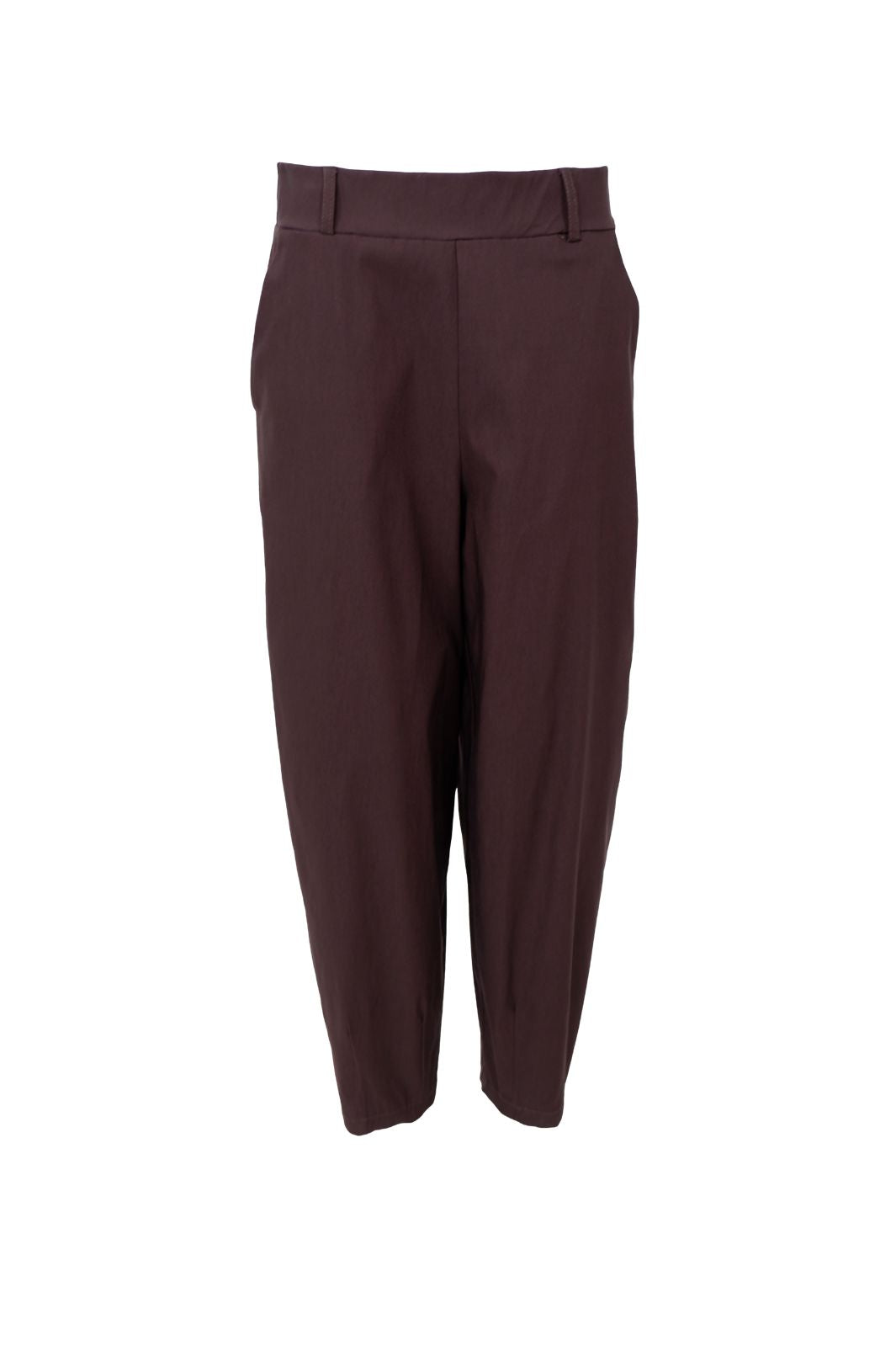 Ruskeat housut Black Colourilta löysässä tynnyrimäisessä muodossa. Housuissa on nilkkapituus ja ne on valmistettu vyölenkeillä vyötäröllä. Suunnittelu on yksinkertainen ja minimalistinen.