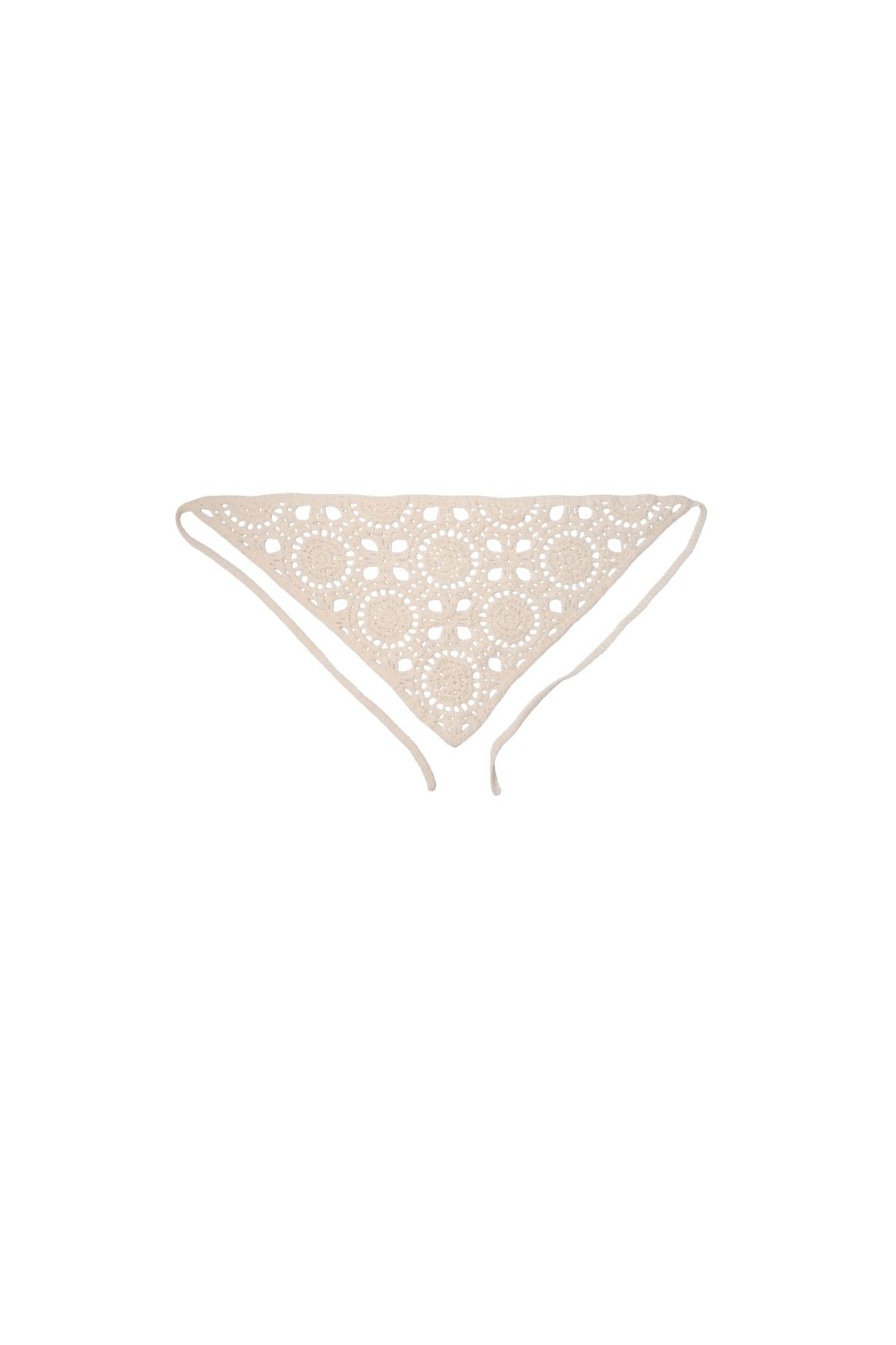 Virkattu huivi Black Colourilta kermanvärisenä. Kolmiomainen malli, jossa on solmittavat nauhat kulmissa kiinnitystä varten.