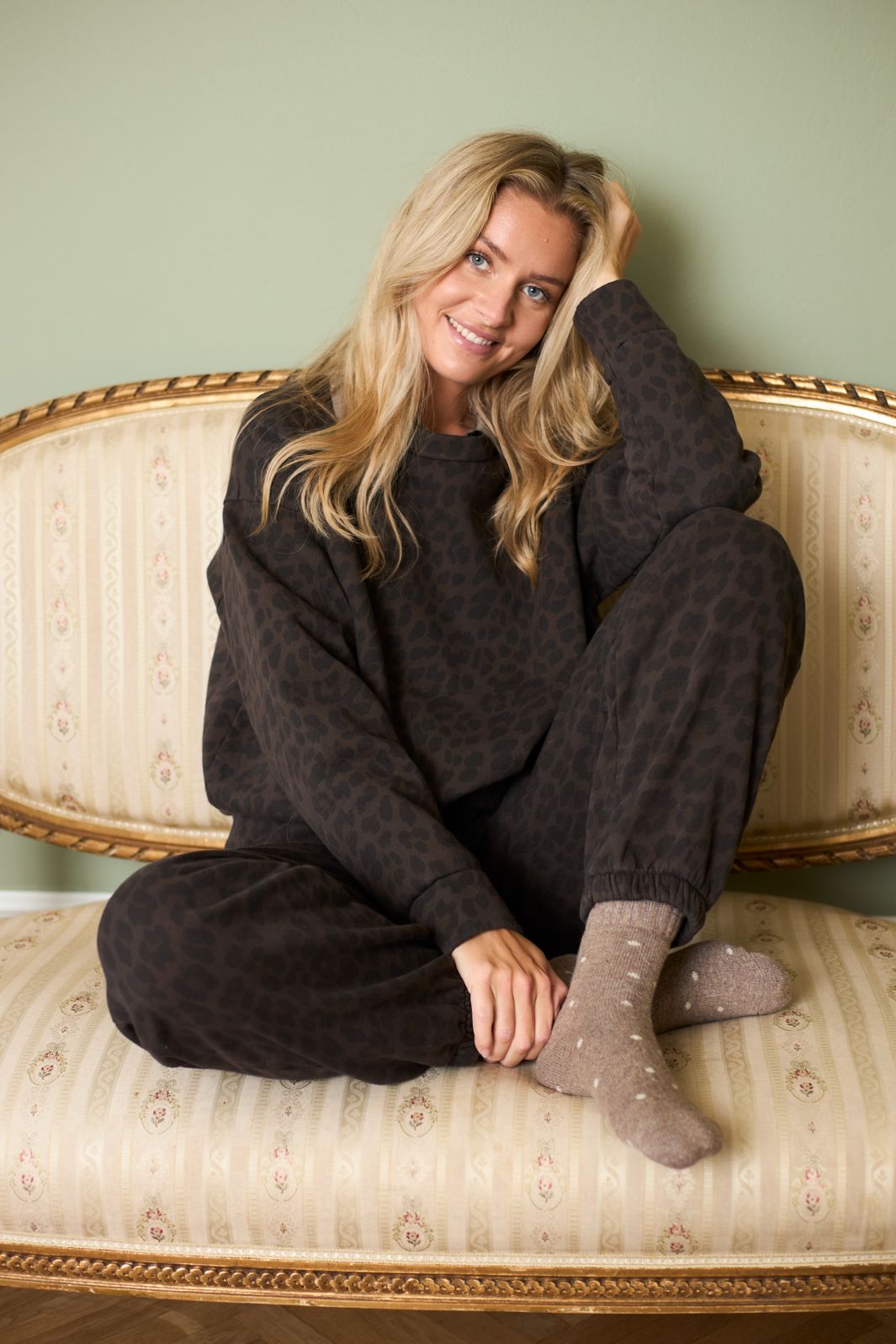 Black Colourin collegepaita, jossa on tumma leopardikuosi ruskeissa sävyissä. Collegepaidassa on löysä malli ja se on valmistettu puuvillasta.