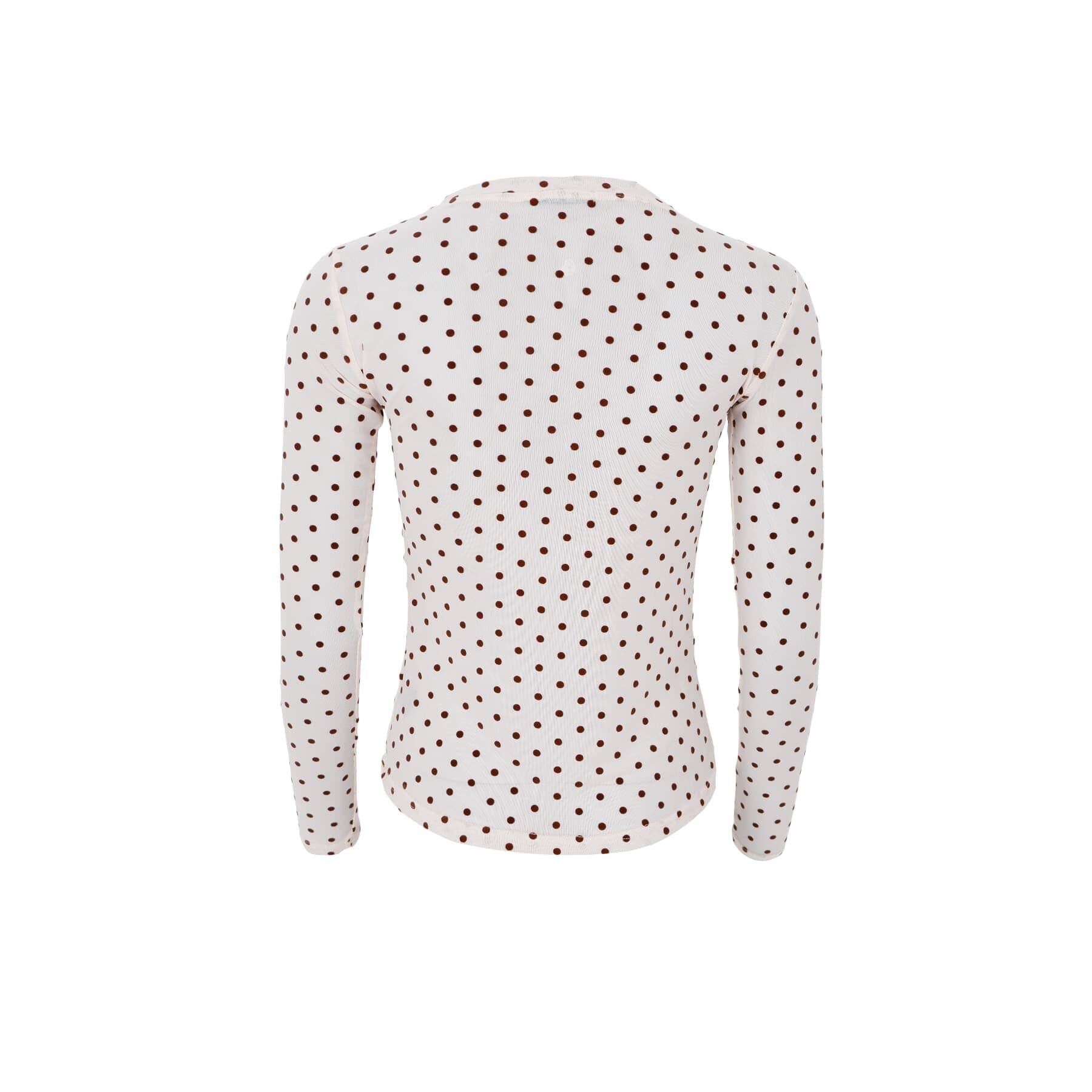 Black Colour -merkin mesh-pusero vaalean kermanvärisenä mustilla pilkuilla. Puserossa on korkea kaulus, pitkät hihat ja slim fit -mitoitus.