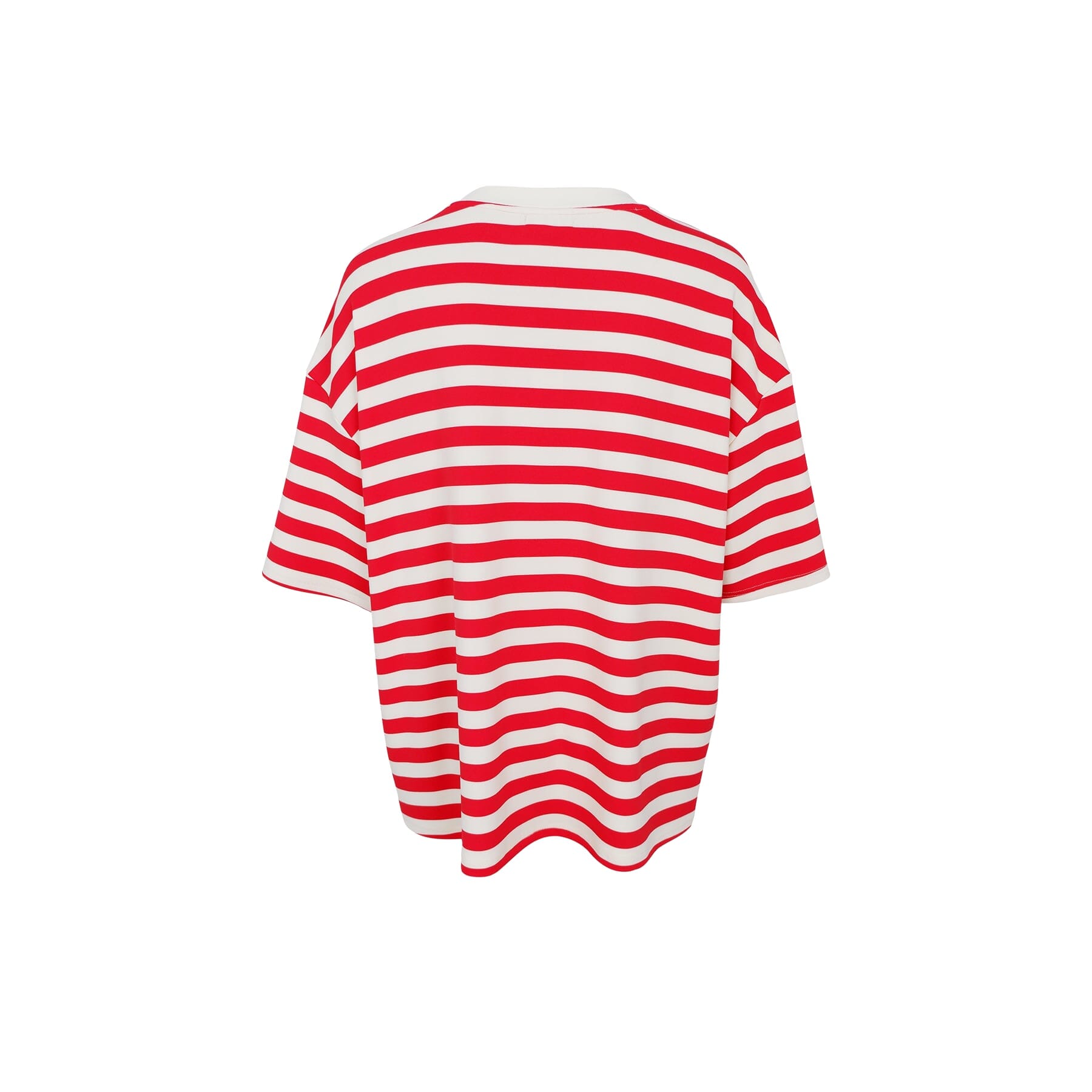 Black Colour -merkin T-paita, jossa on vaakasuuntaiset punaiset ja valkoiset raidat. T-paidassa on pieni brodeerattu logo rinnassa ja väljä istuvuus.