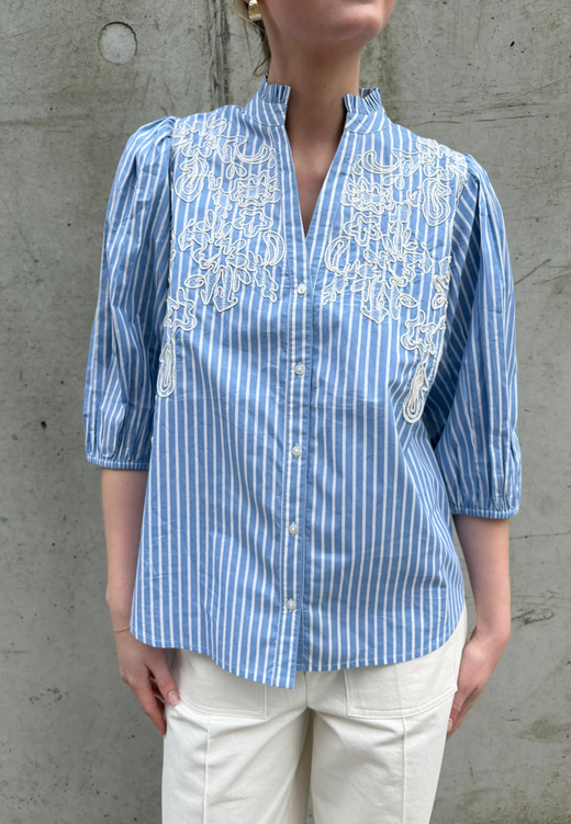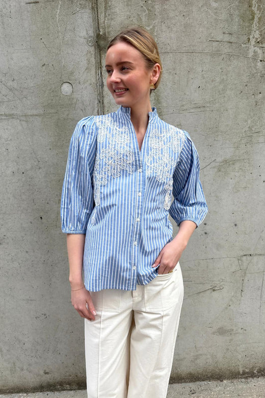 Huivi Black Colour -merkiltä, valmistettu 80 % puuvillasta ja 20 % silkistä vaaleansinisessä sävyssä, jossa on valkoisia pilkkuja.