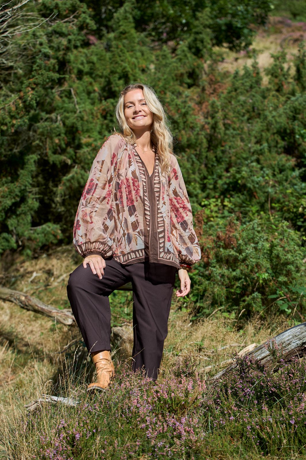 Black Colourin paita 100% puuvillasta kukkakuosilla. Paidassa on löysä malli, V-pääntie, pitkät hihat ja koristeelliset saumat kerman- ja vaaleanpunaisissa sävyissä.