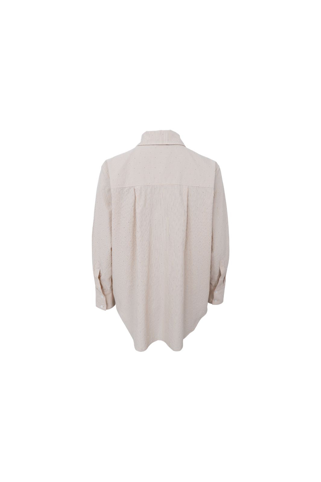 Kreemivärinen paita Black Colourilta, jossa on pinstripe-kuvio ja paljetit. Paidassa on löysä malli ja pitkät hihat, joissa on klassinen kauluspaita ja nappilukitus.