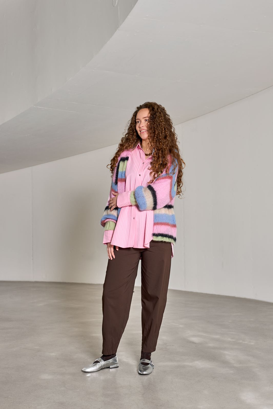 Vaaleanpunainen Black Colour -paita, jossa on pystysuorat raidat. Paidassa on klassinen kaulus, pitkät hihat kalvosimilla ja nappikiinnitys.