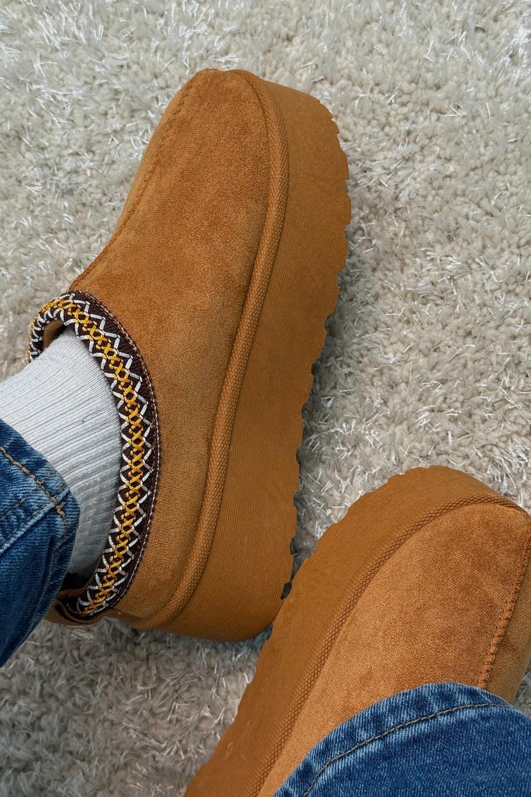 Bloom-merkkiset tossut kiilakorolla lämpimän ruskeassa sävyssä. Valmistettu 100 % synteettisestä materiaalista, pyöreällä kärjellä.