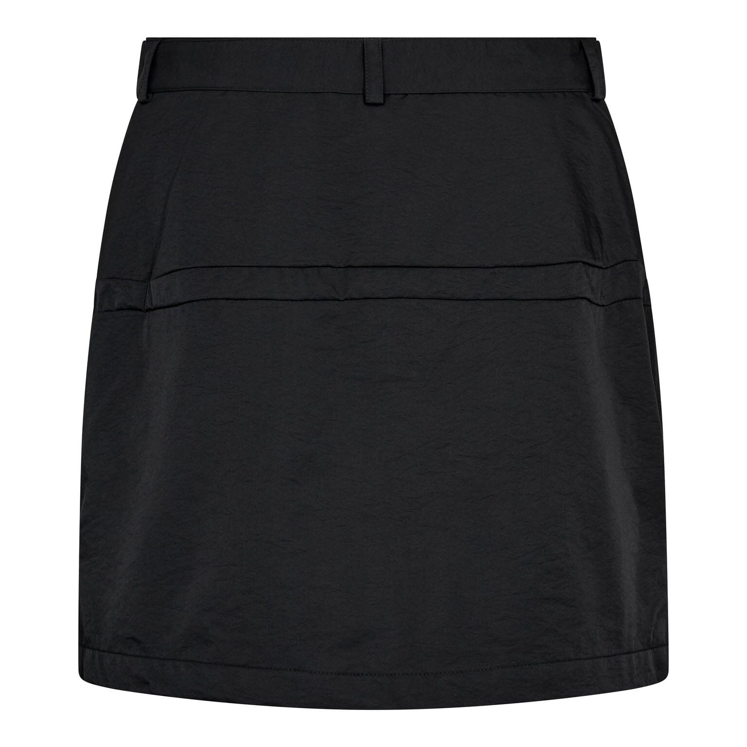 Musta hame Co´Couturelta. Siinä on soljellinen vyö ja kaksi etutaskua läpillä, mikä antaa toiminnallisen ilmeen.