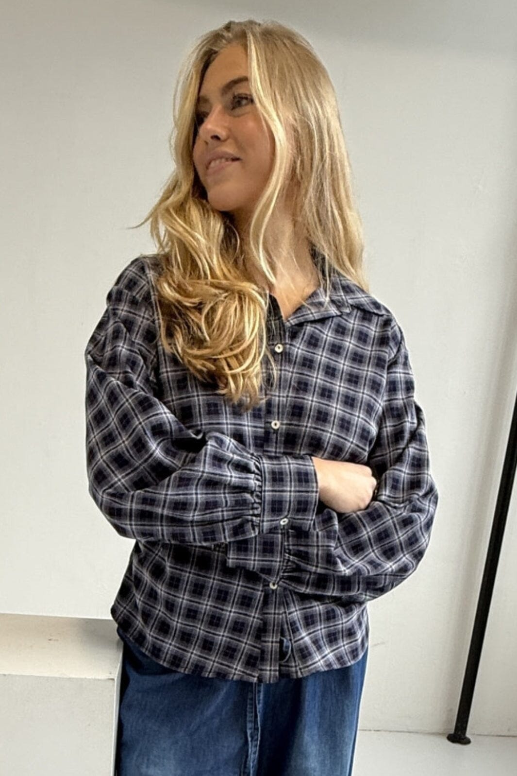 Ruudullinen paita Continuelta tummansinisissä ja sinisissä sävyissä. Paita on valmistettu 100 % puuvillasta ja siinä on klassinen ruutukuvio sekä nappikiinnitys.