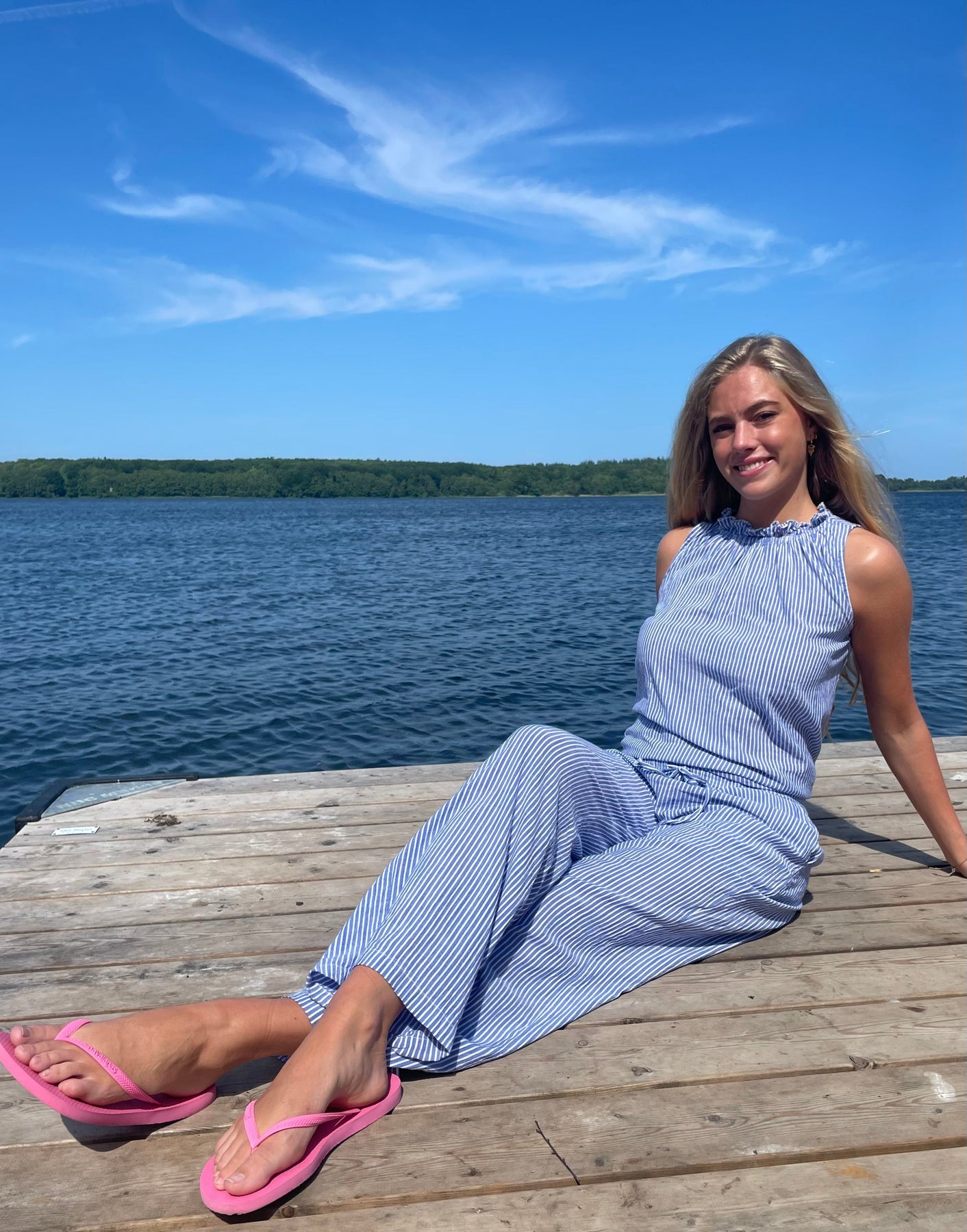 Continue Colis Pants Stripe Väri: Small Stripe Blue/White