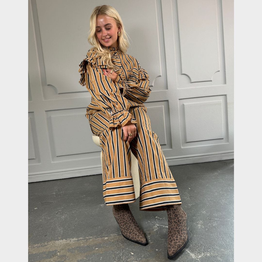 Nilkkuri Copenhagen Shoesilta, valmistettu mokasta, jossa on leopardikuosi. Nilkkurissa on terävä kärki ja 5-8 cm:n lohkokorko.