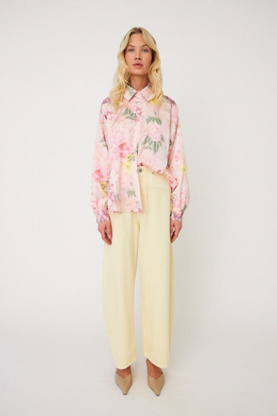 Crasin paita, jossa on kukkakuosi vaaleanpunaisissa sävyissä. Paidassa on löysä malli ja pitkät hihat.