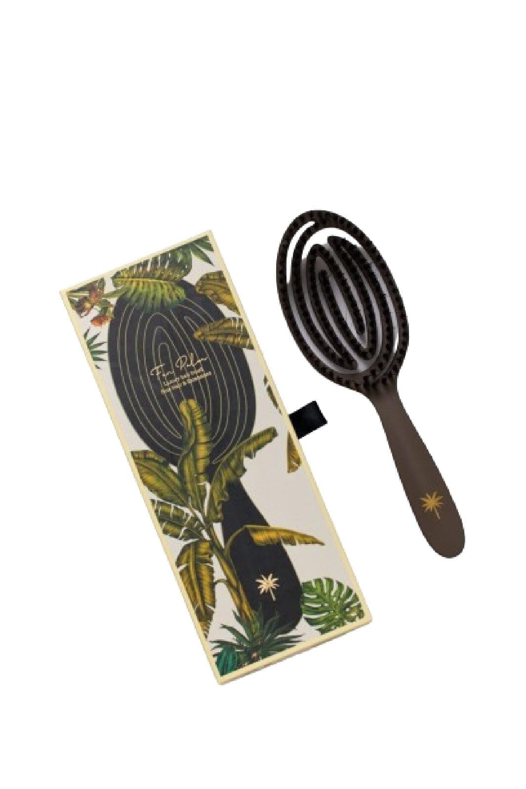 Hiusharja Fan Palmilta lämpimässä harmaassa. Harja, joka on erityisesti suunniteltu hienoille hiuksille ja pidennyksille, yhdistää villisian karvat ja nailonharjat hellävaraiseen hoitoon.
