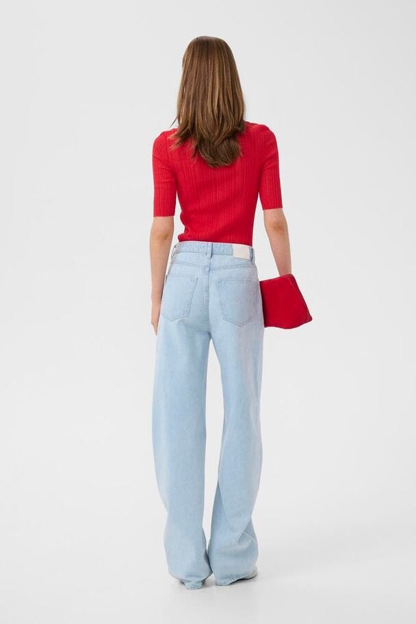 Punainen Gestuzin poolopaita ribatulla tekstuurilla. Topissa on poolokaulus nappikiinnityksellä edessä ja lyhyet hihat.