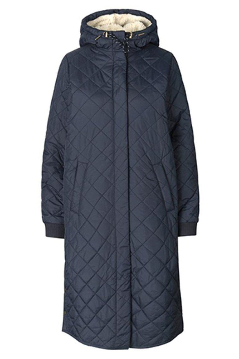 Polvipituinen vuorattu takki Global Funkilta tummansinisessä värissä. Suunniteltu korkealla kauluksella, hupulla ja läpi kulkevalla timanttikuvioinnilla pinnalla. Ribbaus hihoissa antaa hyvän istuvuuden.