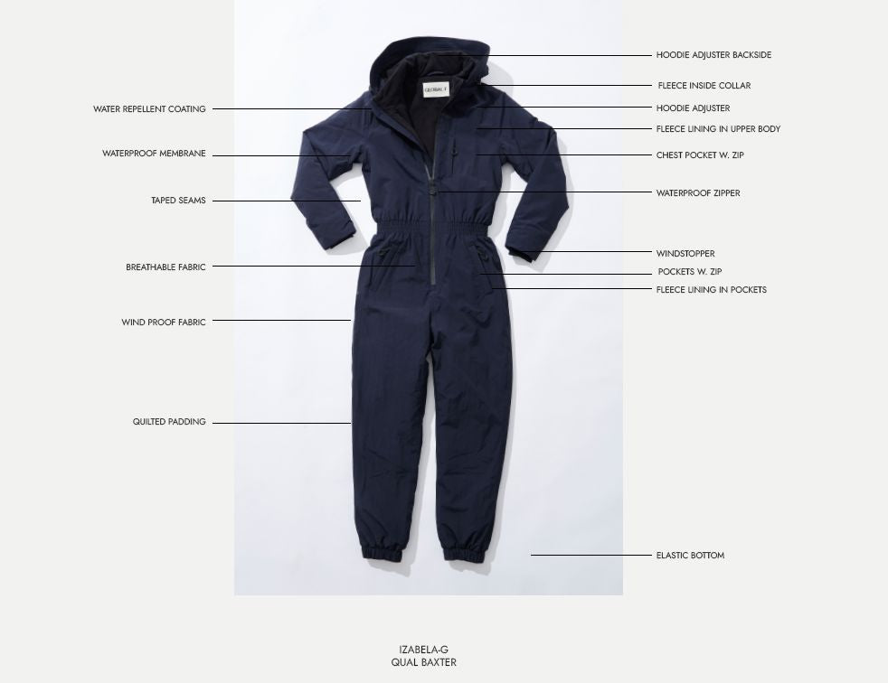 Olivi vihreä haalari Global Funkilta, jossa on vettä hylkivä ominaisuus. Siinä on fleecevuori ylävartalossa ja hupussa sekä polyesteritäyte käsivarsissa ja jaloissa hyvän lämmön takaamiseksi.