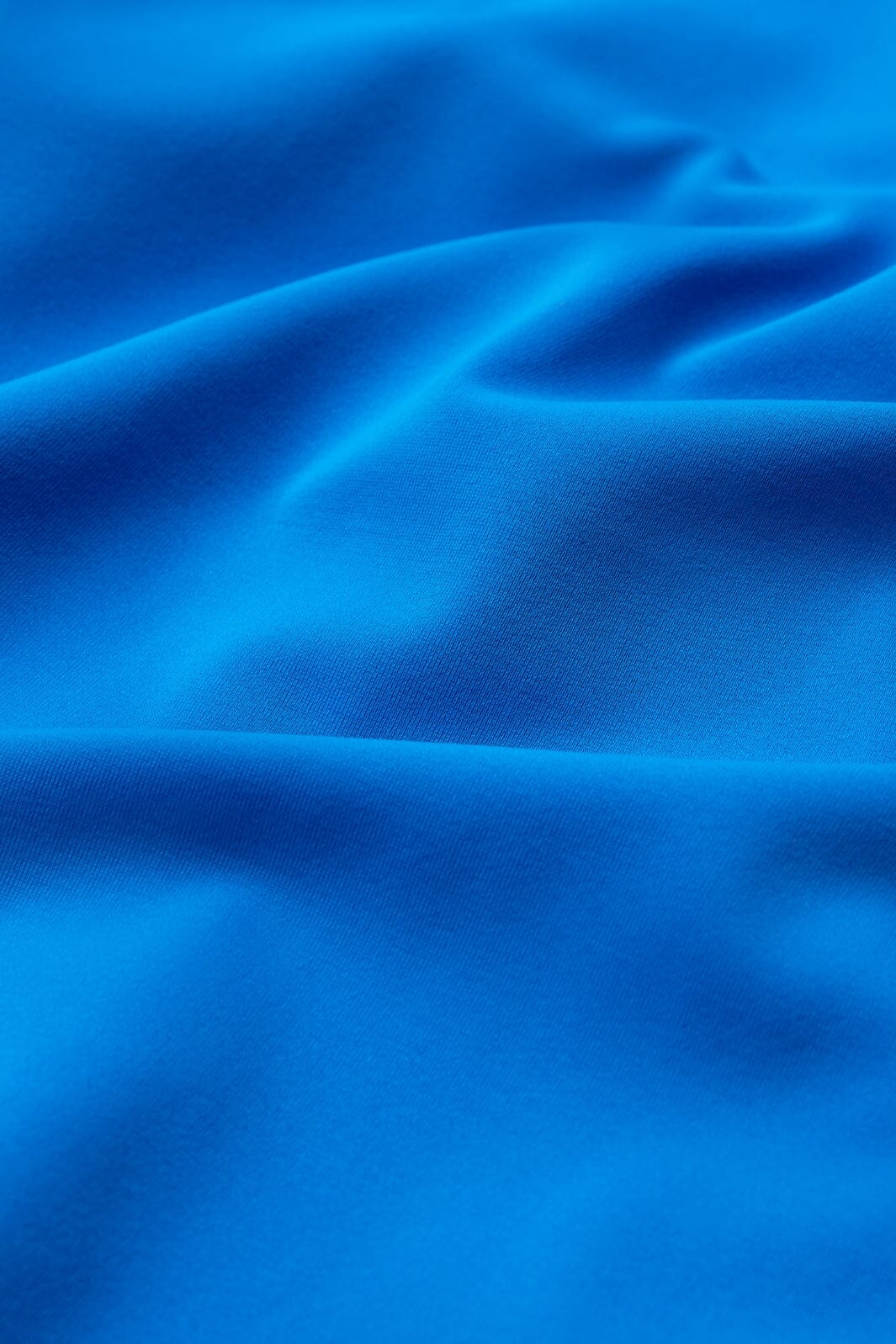 Kuningas sininen uimapuku H2O:lta, jossa on korkea lahkeensuukku ja syvä selkä. Sivulla oleva sävy sävyyn logo antaa puhtaan ilmeen, kun taas kirkas sininen väri erottuu sekä rannalla että altaalla.
