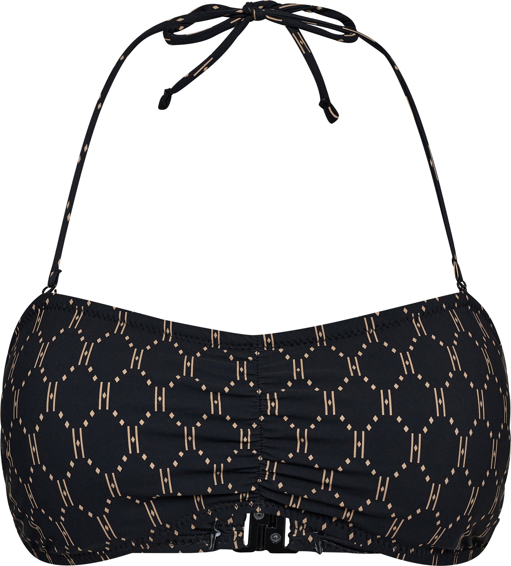 Hype The Detail -merkin bikini-bandeau mustana, jossa on geometrinen kuvio koko bikinissä. Bandeaussa on niskalenkki ja solmittavat nauhayksityiskohdat.