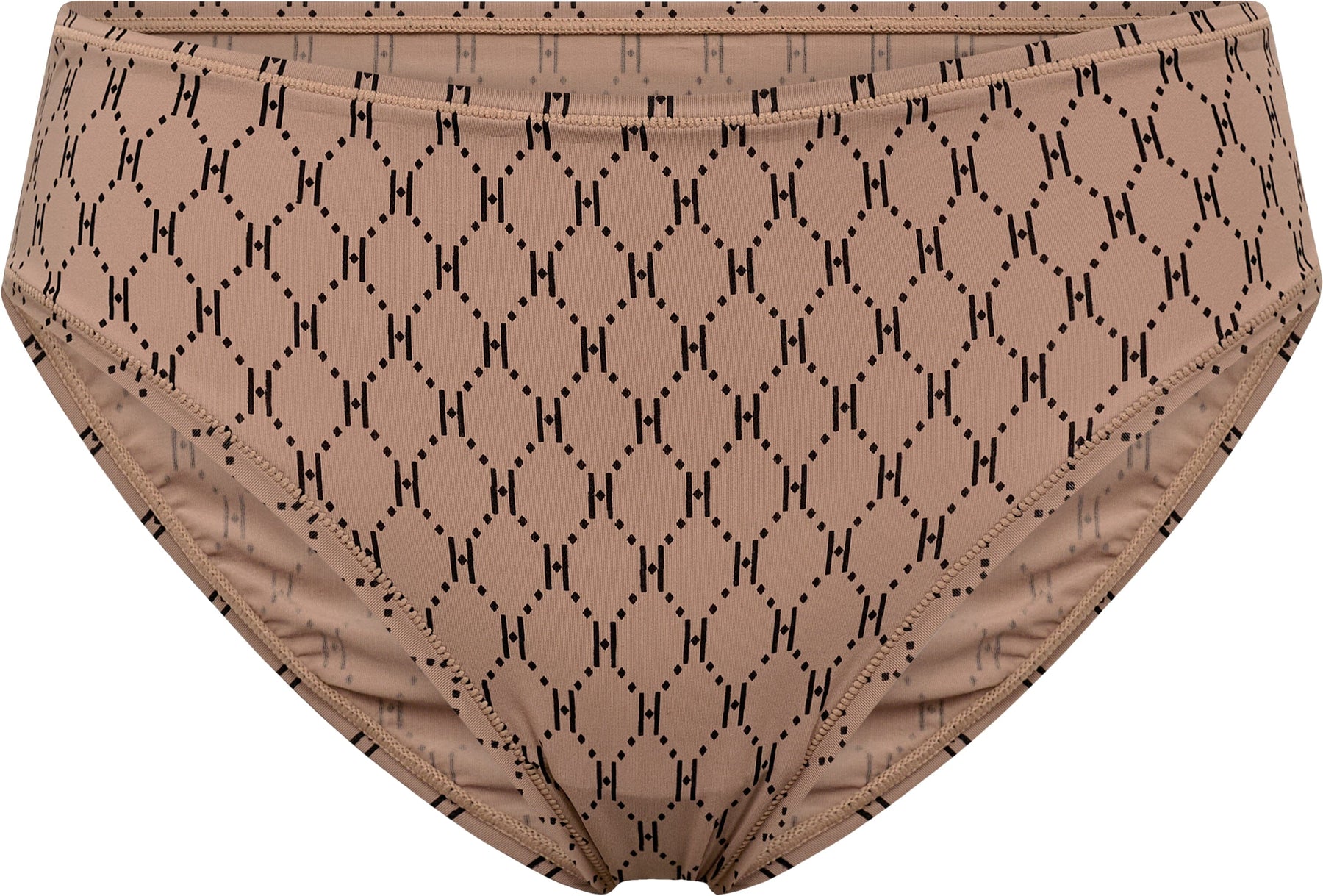 Ruskeat tai-alushousut Hype The Detail -merkiltä 3 kappaleen pakkauksessa. Alushousuissa on toistuva musta logokuvio ruskealla pohjalla.