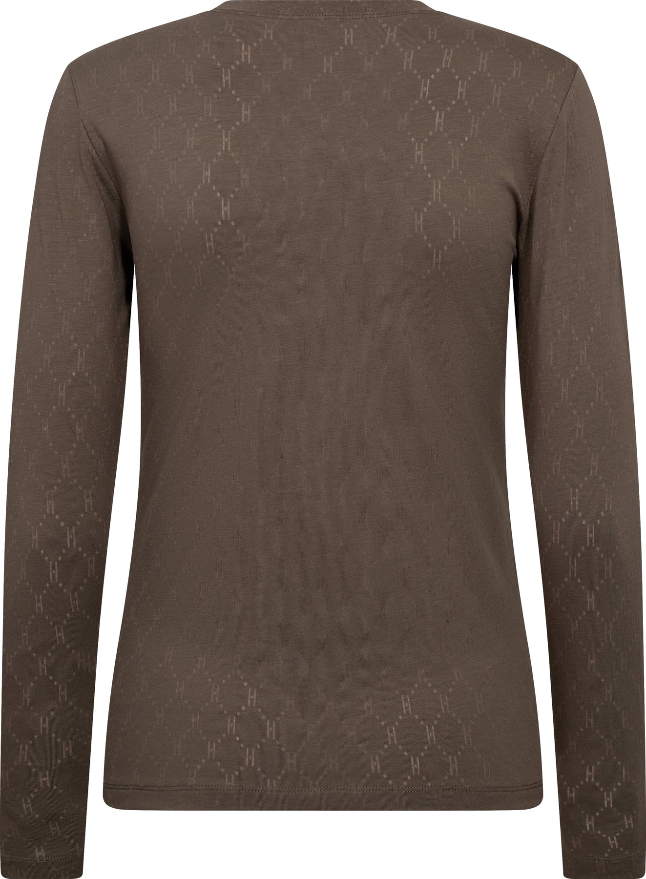 Hype The Detailin ruskea pitkähihainen t-paita. Valmistettu 60 % puuvillasta, 35 % polyesteristä ja 5 % elastaanista, ja kankaassa on hienovarainen painatus.
