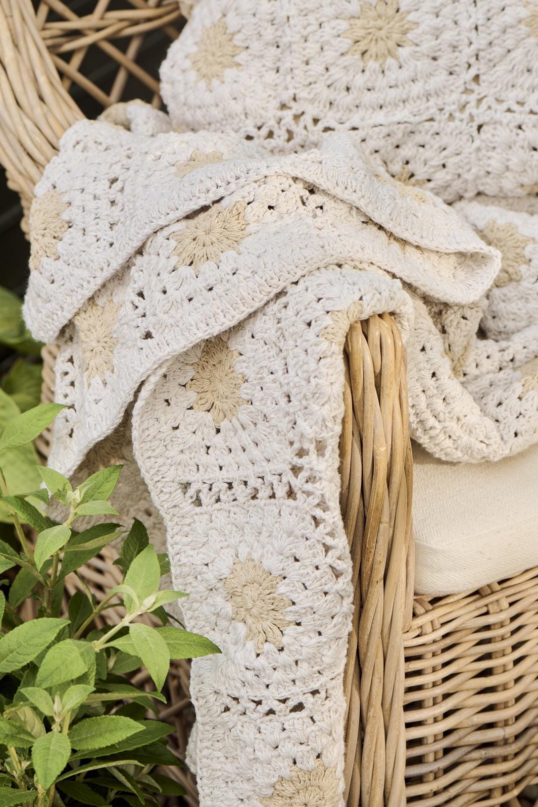 Ib Laursen Plaid hæklet creme m/naturfarvede blomster Väri: 100% bomuld