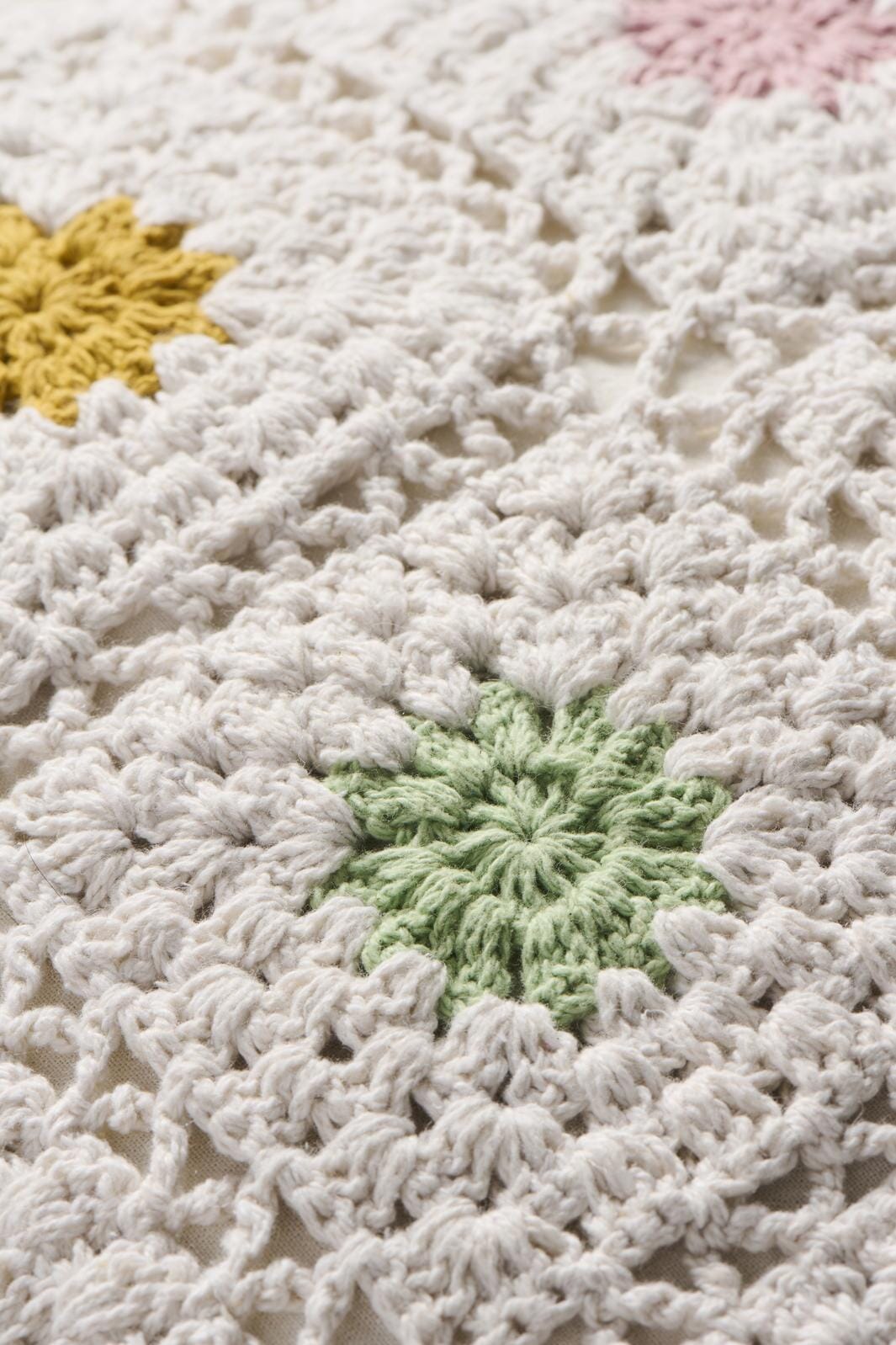 Ib Laursen - Pudebetræk hæklet creme m/multifarvede blomster, bagside i cremefarvet lærred - 100% bomuld - 6191-01