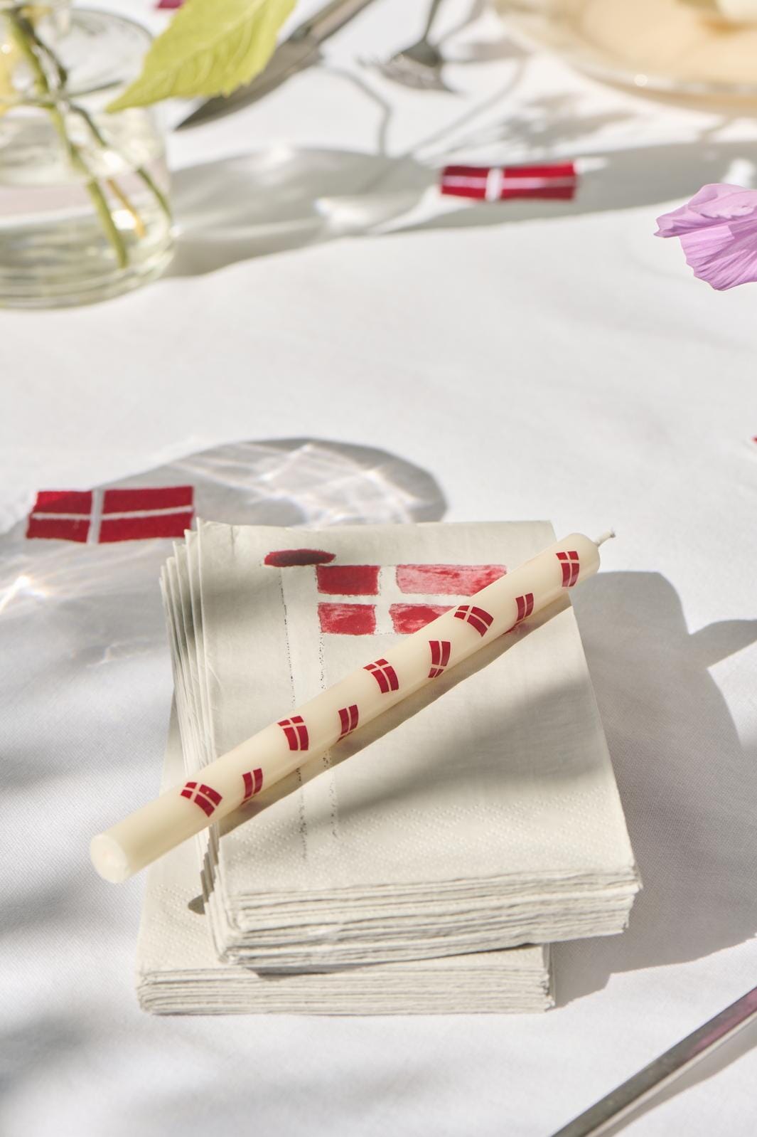 Serviet 10x20 cm Dannebrog på flagstang 16 stk/pk