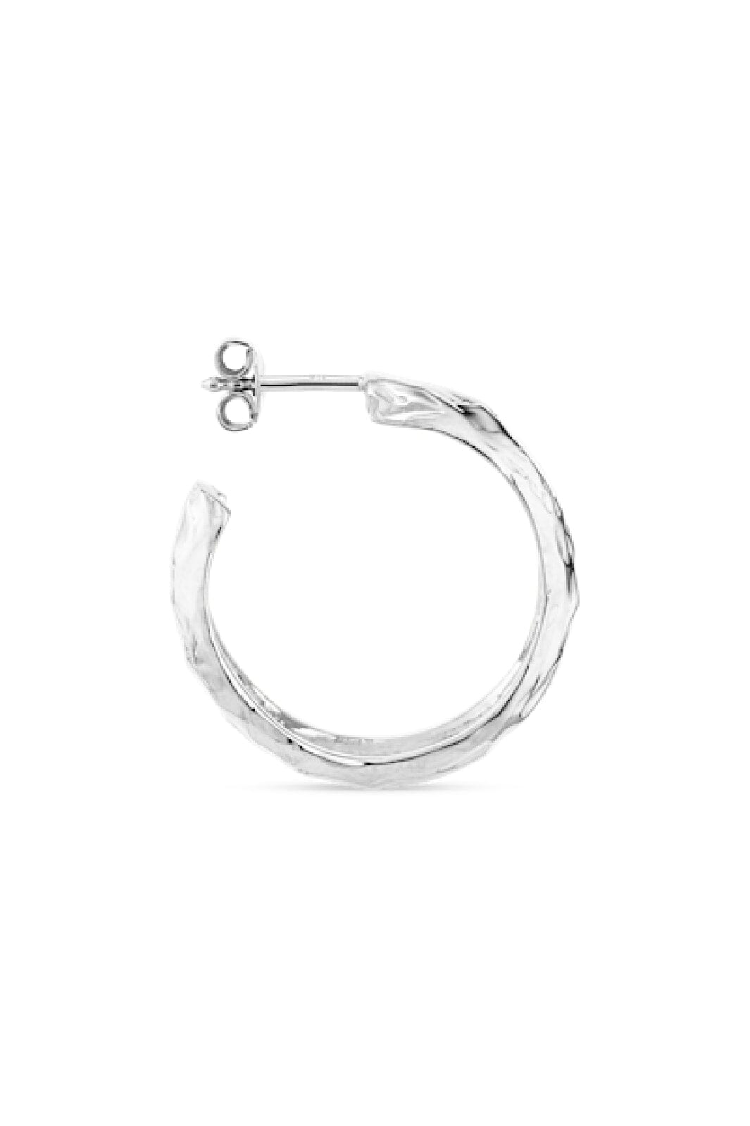 Hope-korvakorut hopeanvärisenä Jane Kønigilta, jossa on sydämen muotoinen riipus. Korvakorussa on pisteellinen pinta ja se on valmistettu sterlinghopeasta hopeoituna.