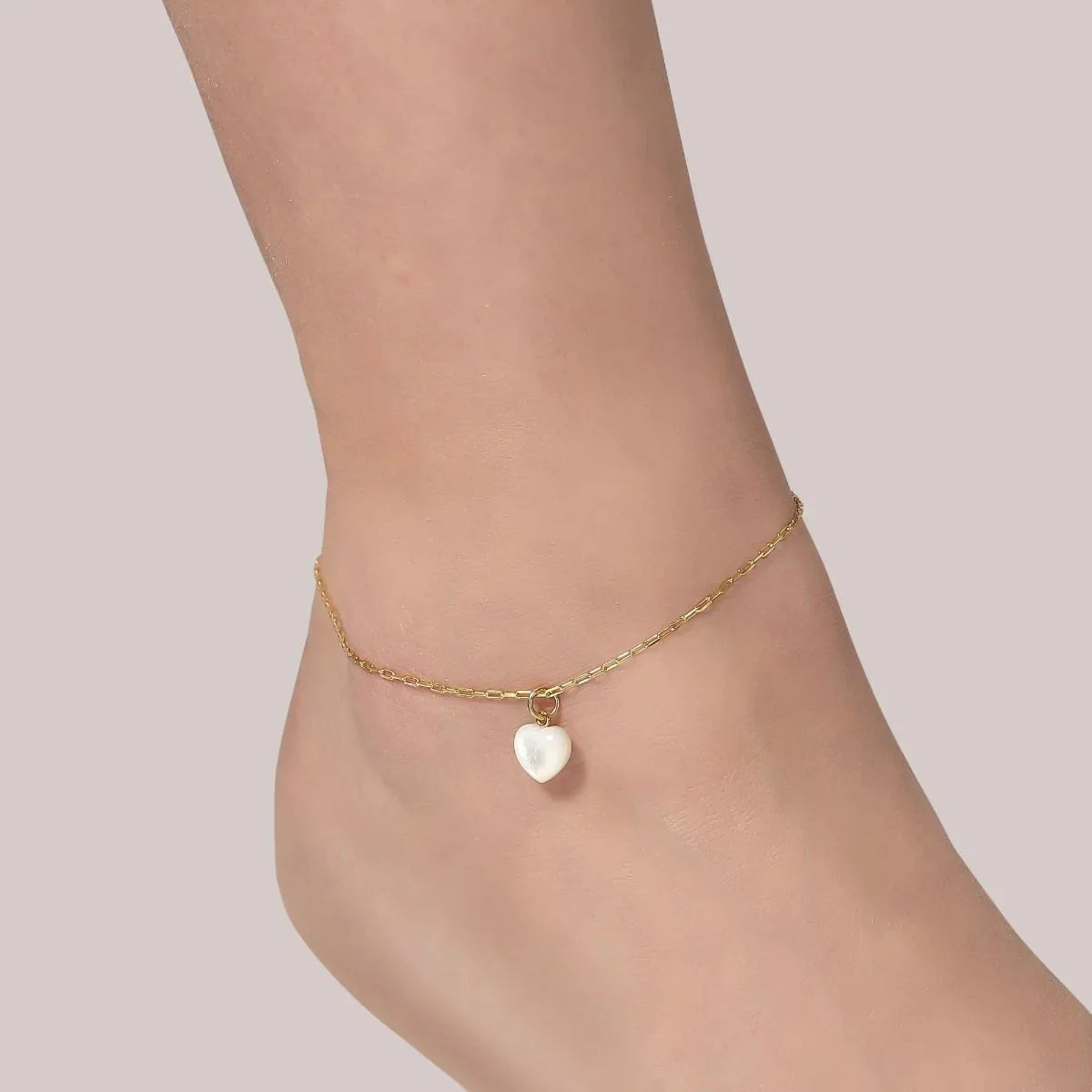 Jane Kønigin sydänmuotoinen riipus kullatusta sterlinghopeasta ja valkoisesta helmiäisestä. Pieni koru, jossa on kiiltävä pinta, jota voidaan käyttää eri tavoin.