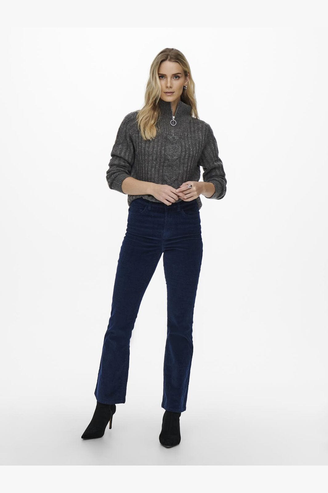 JDY Jdyandrea L/S Zip Cable Pullove Knt Väri: 3808118 Dark Grey Melange