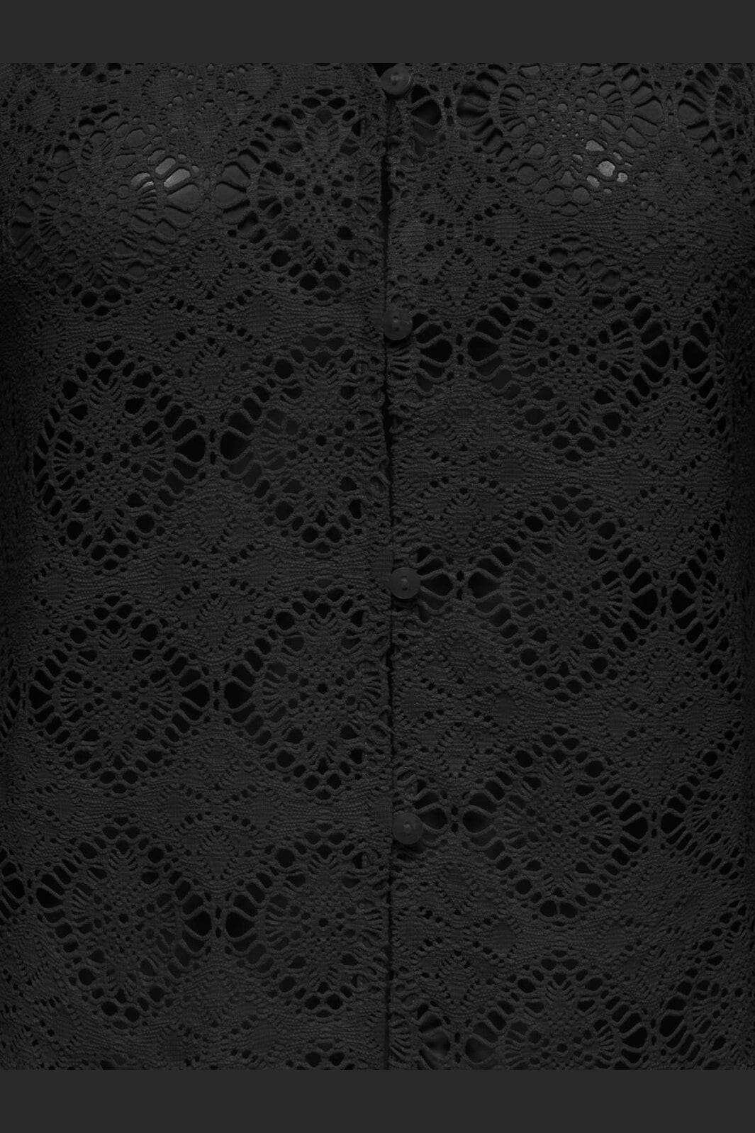 Musta hihaton toppi JDY:ltä, jossa on pitsiä ja nappikiinnitys. Topissa on V-pääntie, ja se on valmistettu 94 % polyesteristä ja 6 % elastaanista.