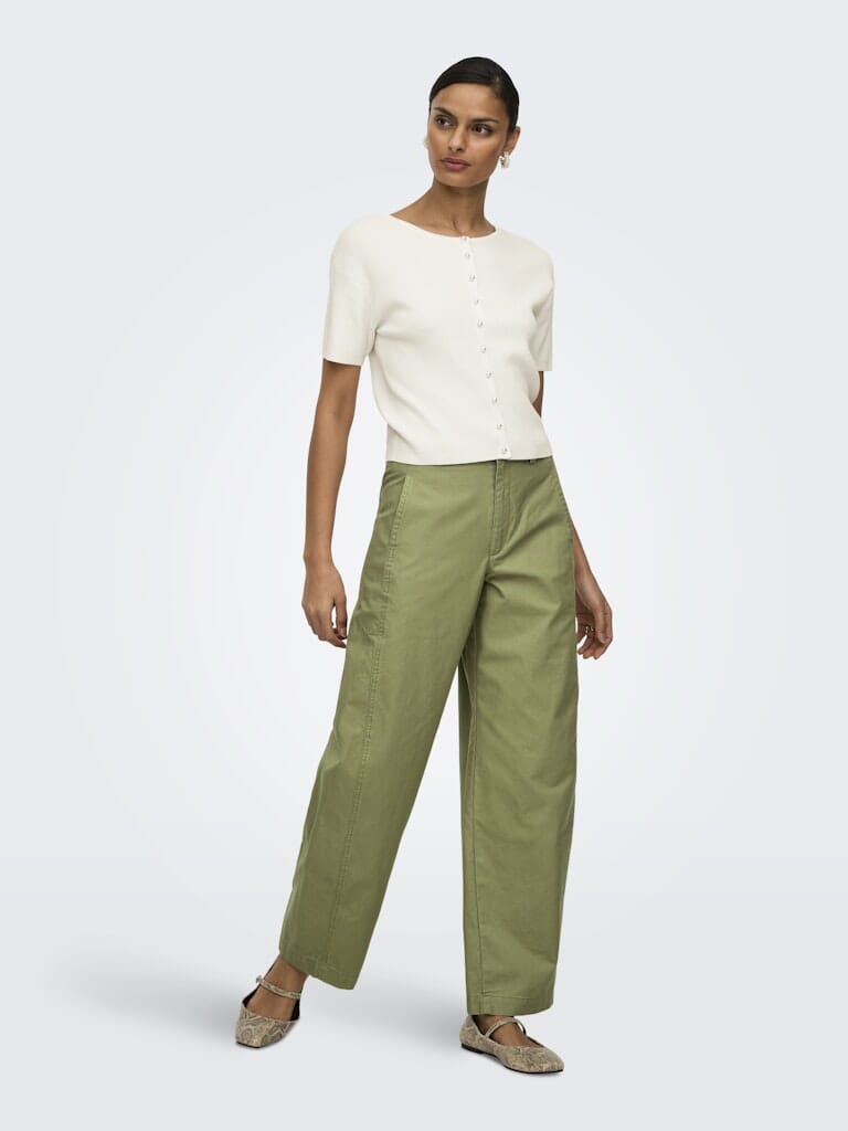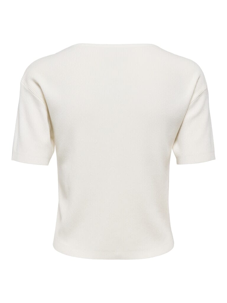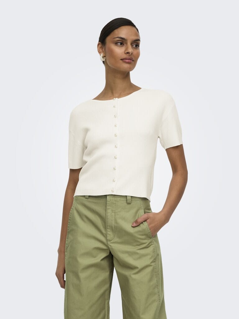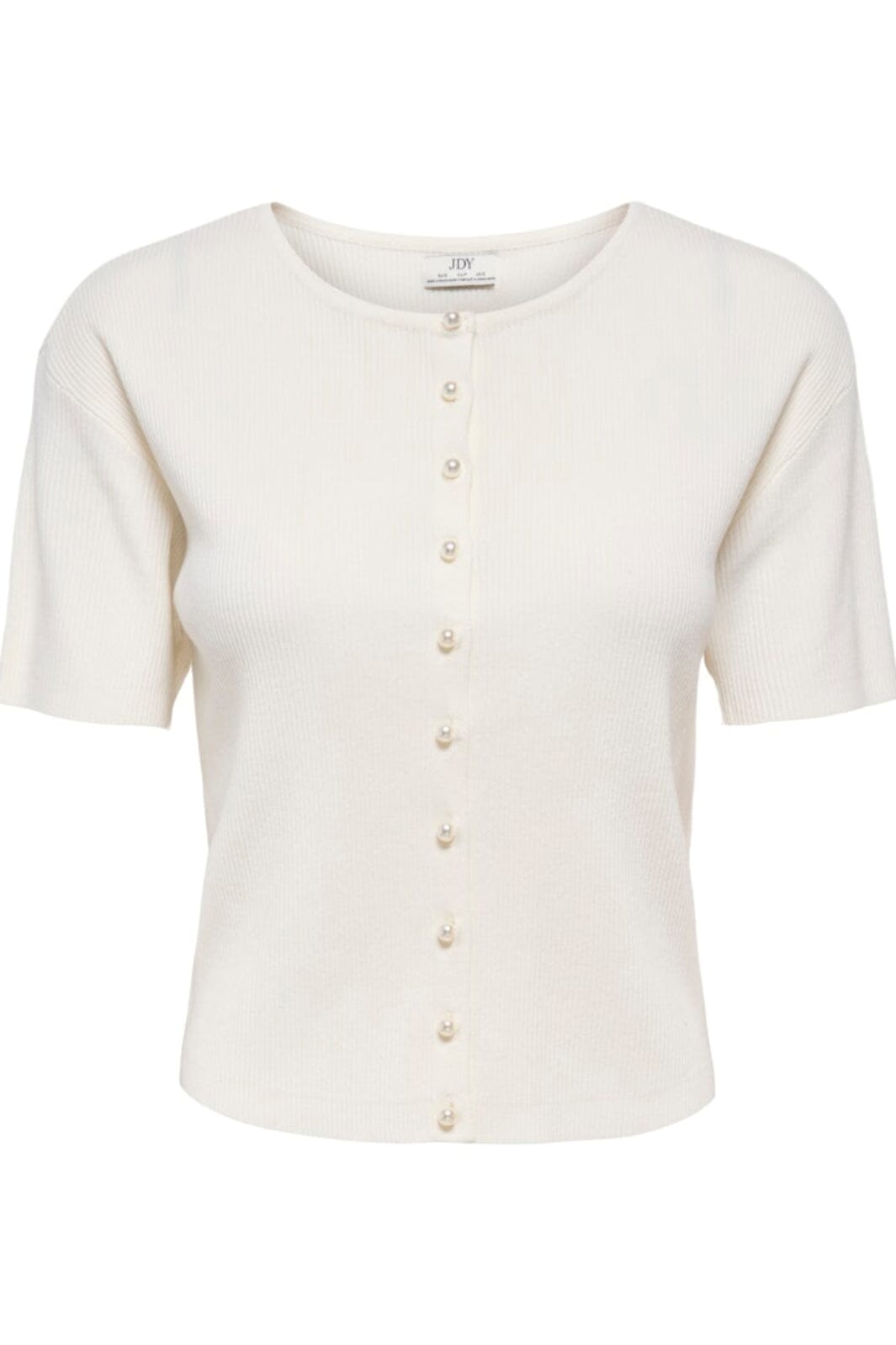 Lyhythihainen neuletakki JDY:ltä kermaisen valkoisessa sävyssä. Neuletakissa on helmipainikkeet ja pyöreä pääntie.