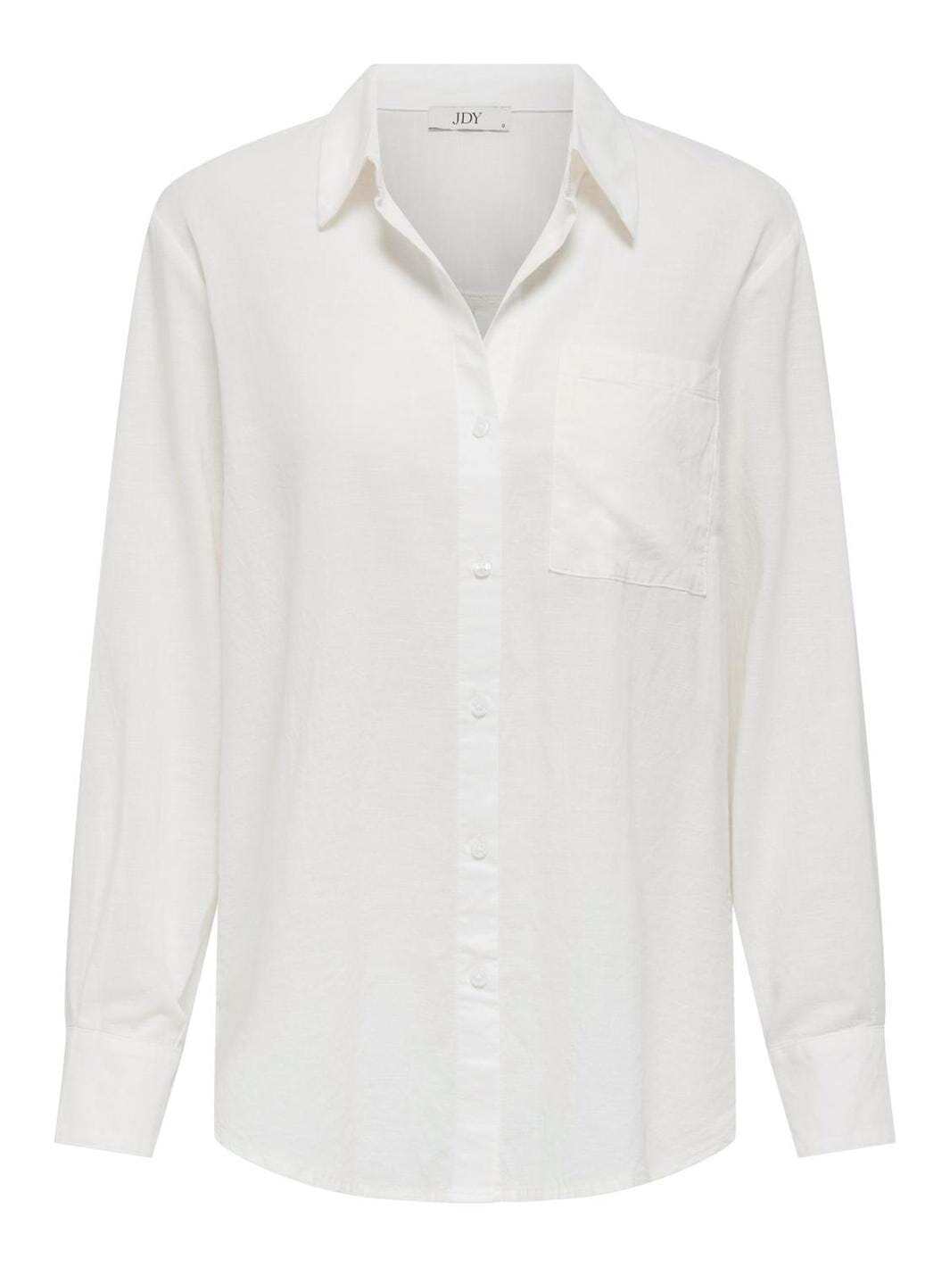 JDY:n valkoinen paita puuvillamateriaalista. Paidassa on volyymikkaat hihat, joissa on nappikiinnitys manseteissa, ja klassinen kauluspaita. Rintatasku edessä tarjoaa käytännöllistä säilytystä.