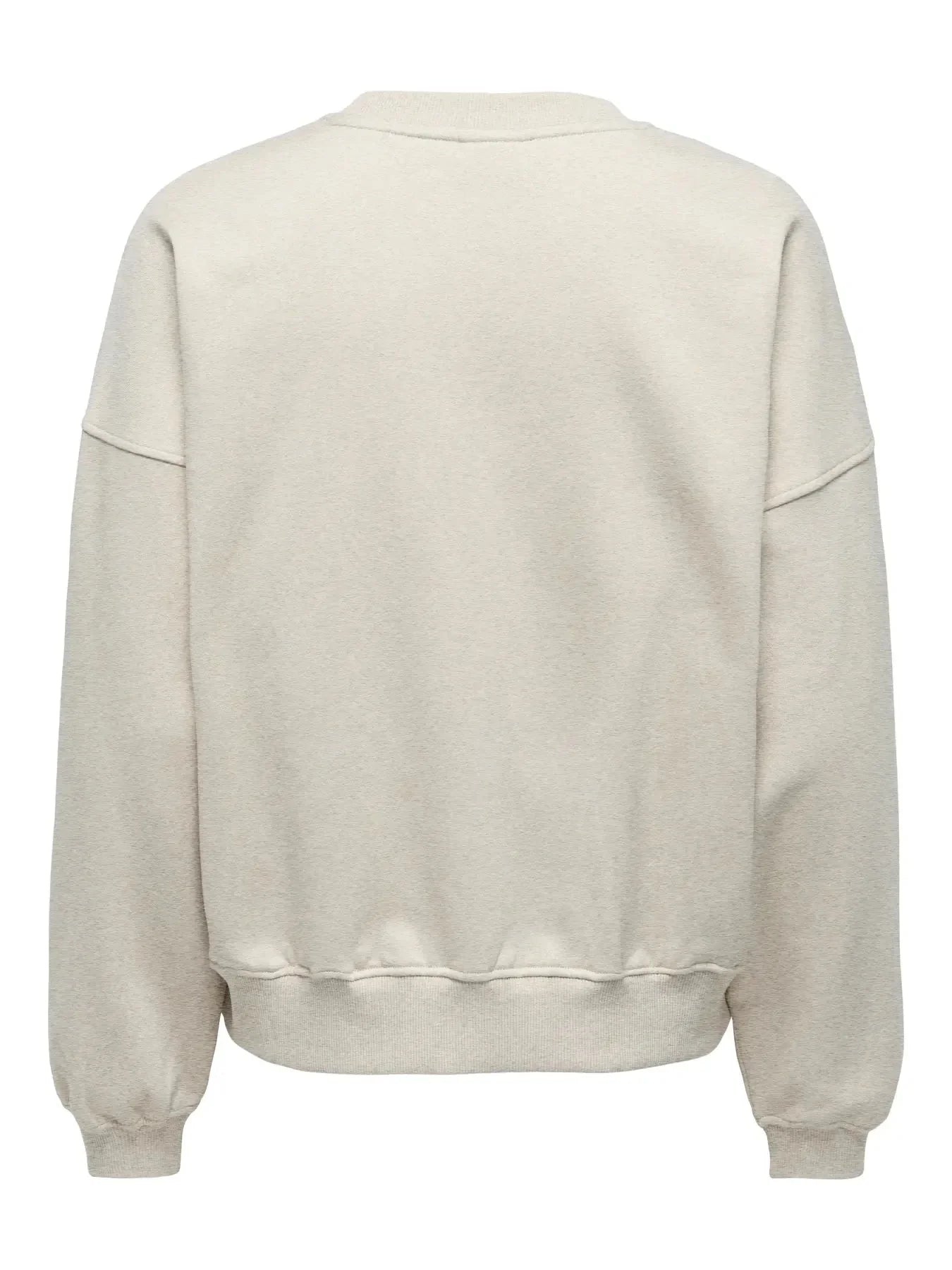 Beige collegepaita JDY:ltä, jossa on kirjailu edessä. Collegepaidassa on pitkät hihat, pyöreä pääntie ja regular fit -mitoitus.