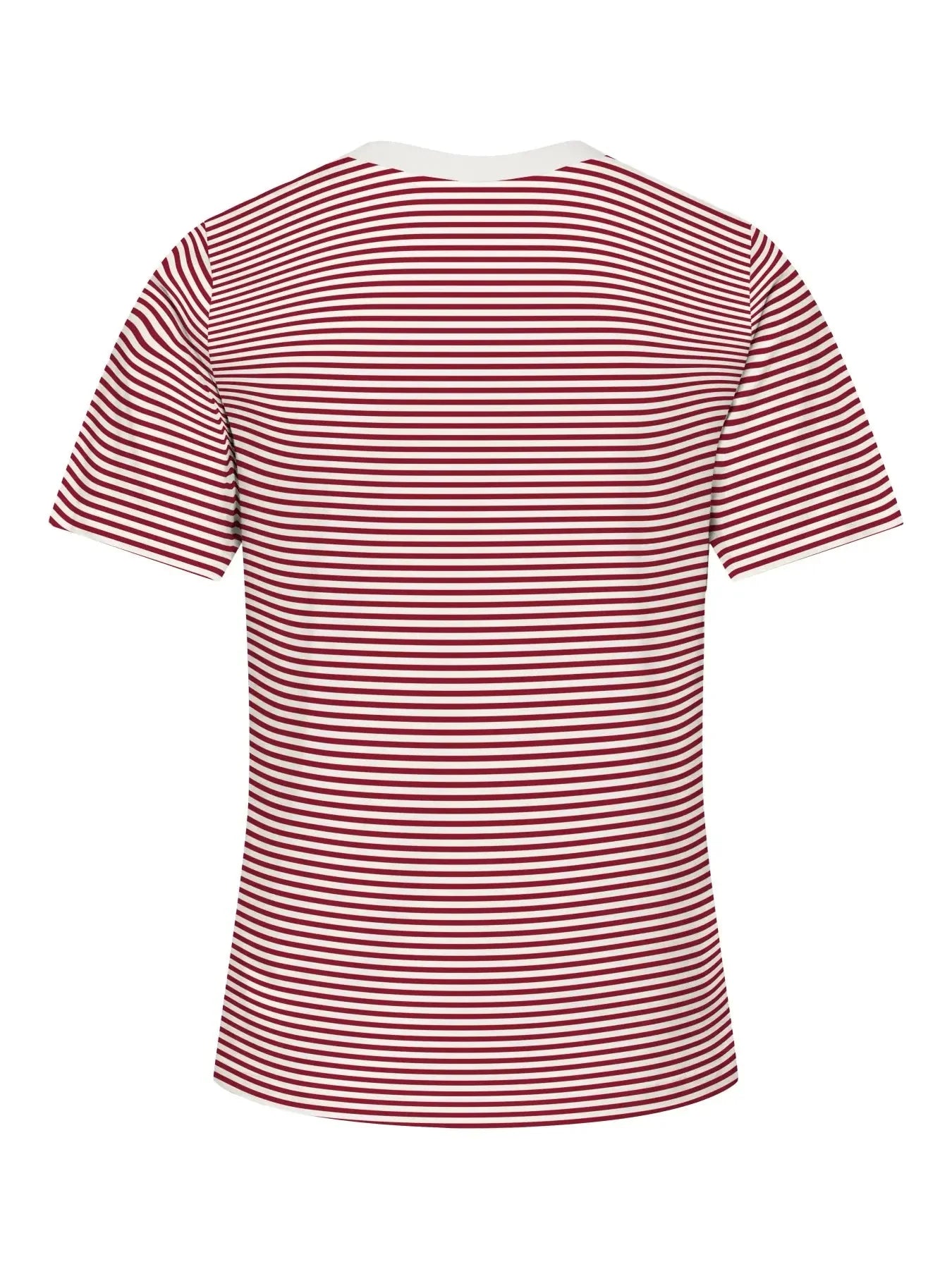 Raidallinen T-paita JDY:ltä, valmistettu 100 % puuvillasta punaisen ja valkoisen sävyissä, rintaa koristaa punainen brodeerattu sydän.