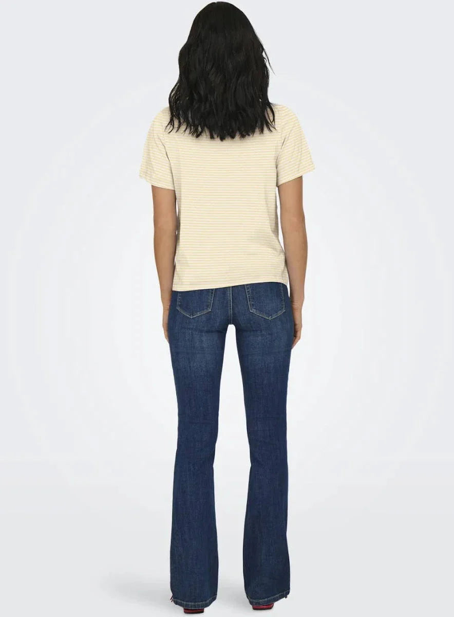 JDY Jdypisa S/S Print Top Väri: 5048773 Cloud Dancer Double Cream Stripes + Chicory Coffee Heart