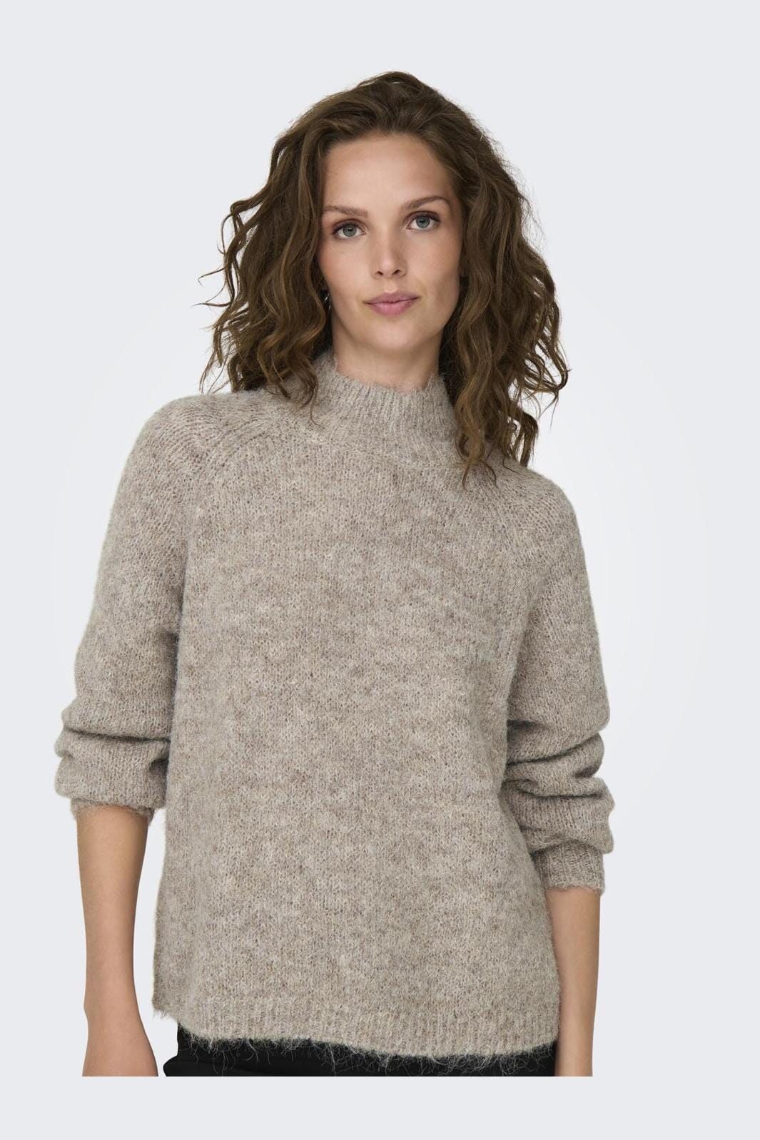 Harmaan sekoitteen neulepaita JDY:ltä, jossa on alhaiset olkasaumat ja korkea kaulus. Siinä on pitkät hihat ribbireunuksella ja regular fit -malli, joka tarjoaa hyvää liikkuvuutta.