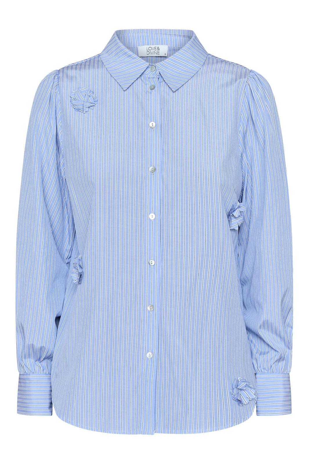 Raidallinen paita Jjxx:ltä vaaleassa väriskaalassa. Siinä on löysä malli, jossa on pitkät hihat ja alhaiset olkasaumat. Paidassa on klassinen kaulus ja nappilukitus edessä.