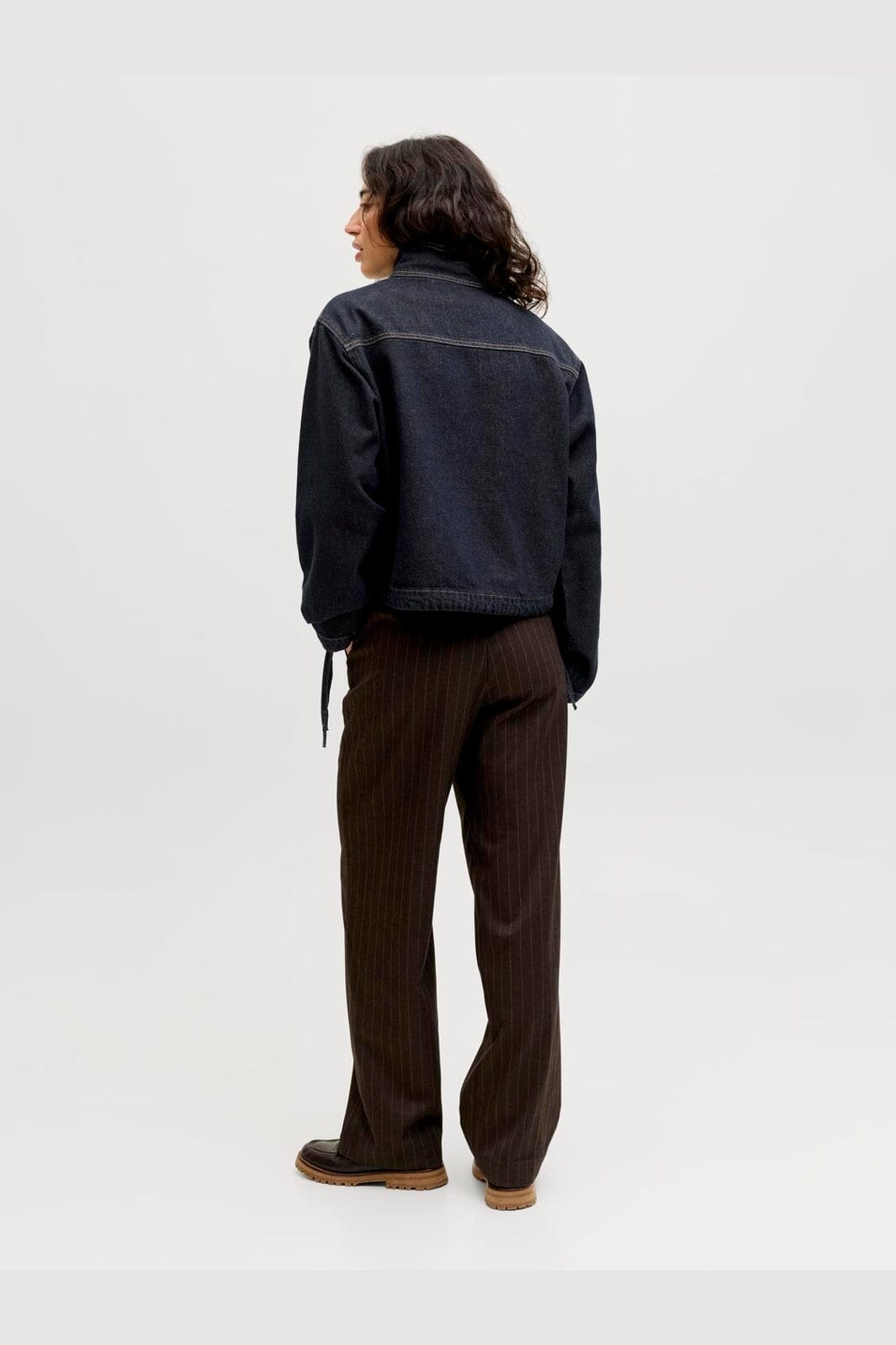 Denim-pusero Jjxx:ltä tummansinisestä denimistä, jossa on korkea kaulus ja puolipainike. Siinä on löysä istuvuus ja rintatasku edessä. Vyötäröllä oleva naru mahdollistaa istuvuuden säätämisen.