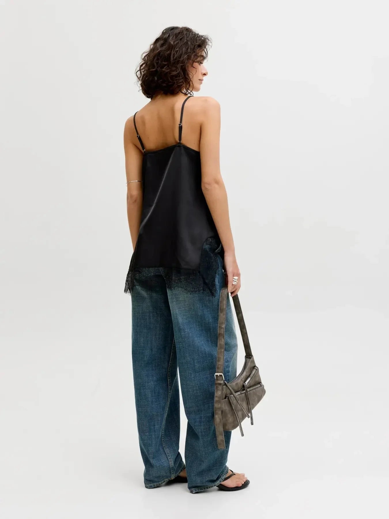 Jjxx Jxvima Singlet Satin Lace Long Top Väri: 5076719 Black